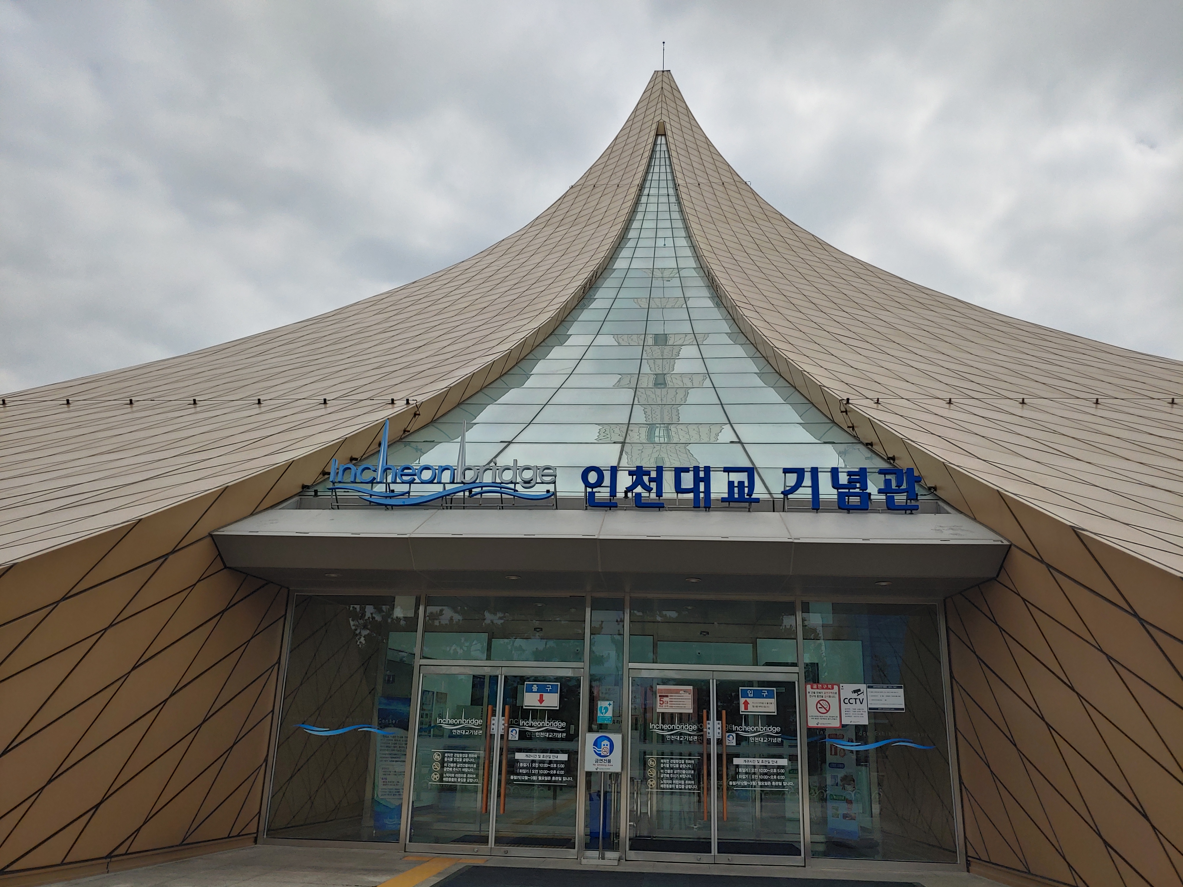 인천대교 건너면서 보이는 독특한 외관의 건물이 있길래 저긴 어딜까 했더니 인천대교 기념관이더라구요
