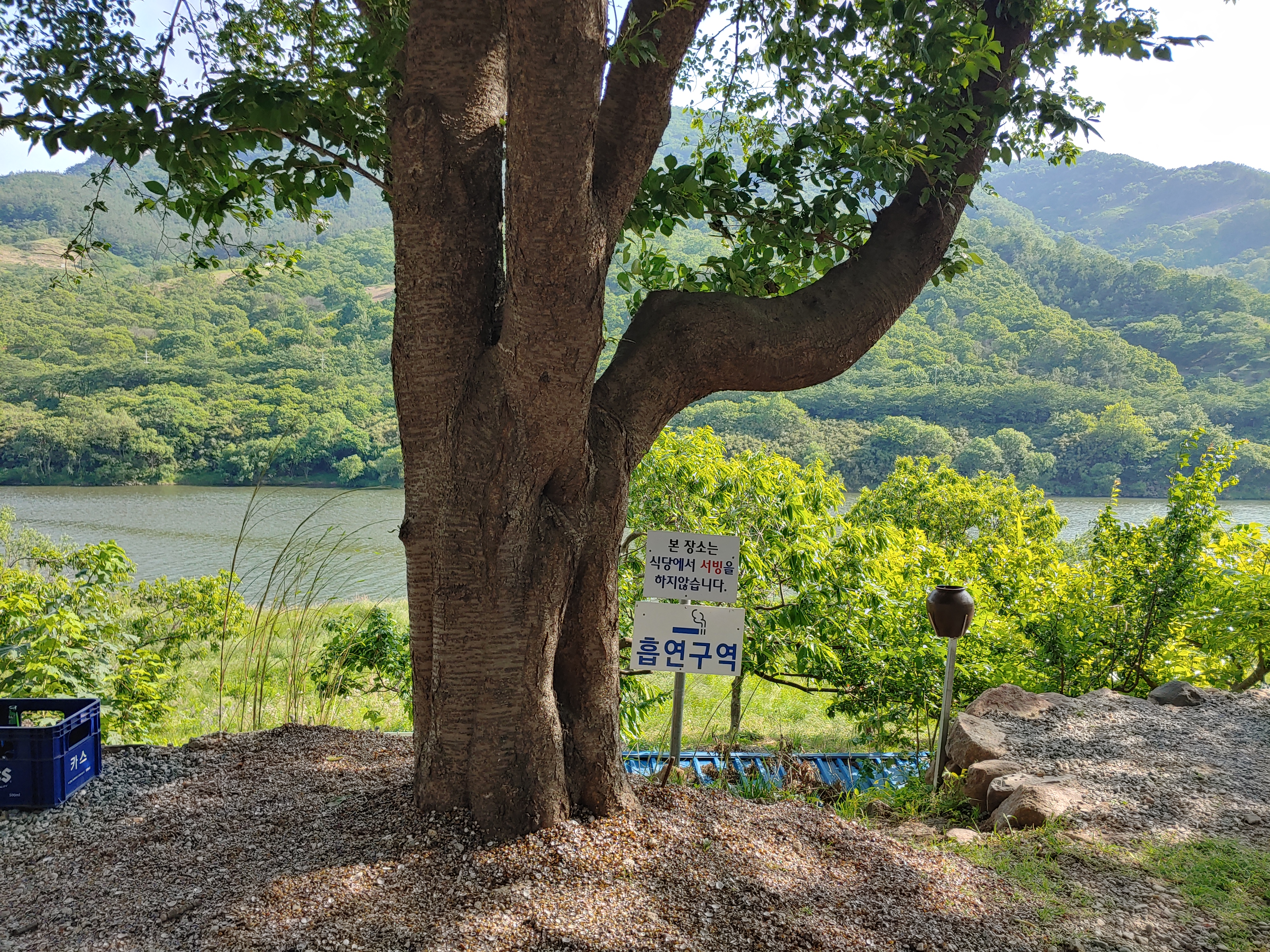 그 뷰가 섬진강 재첩국수앞 공터로 식당에서 서빙을 하지 않는곳이에요