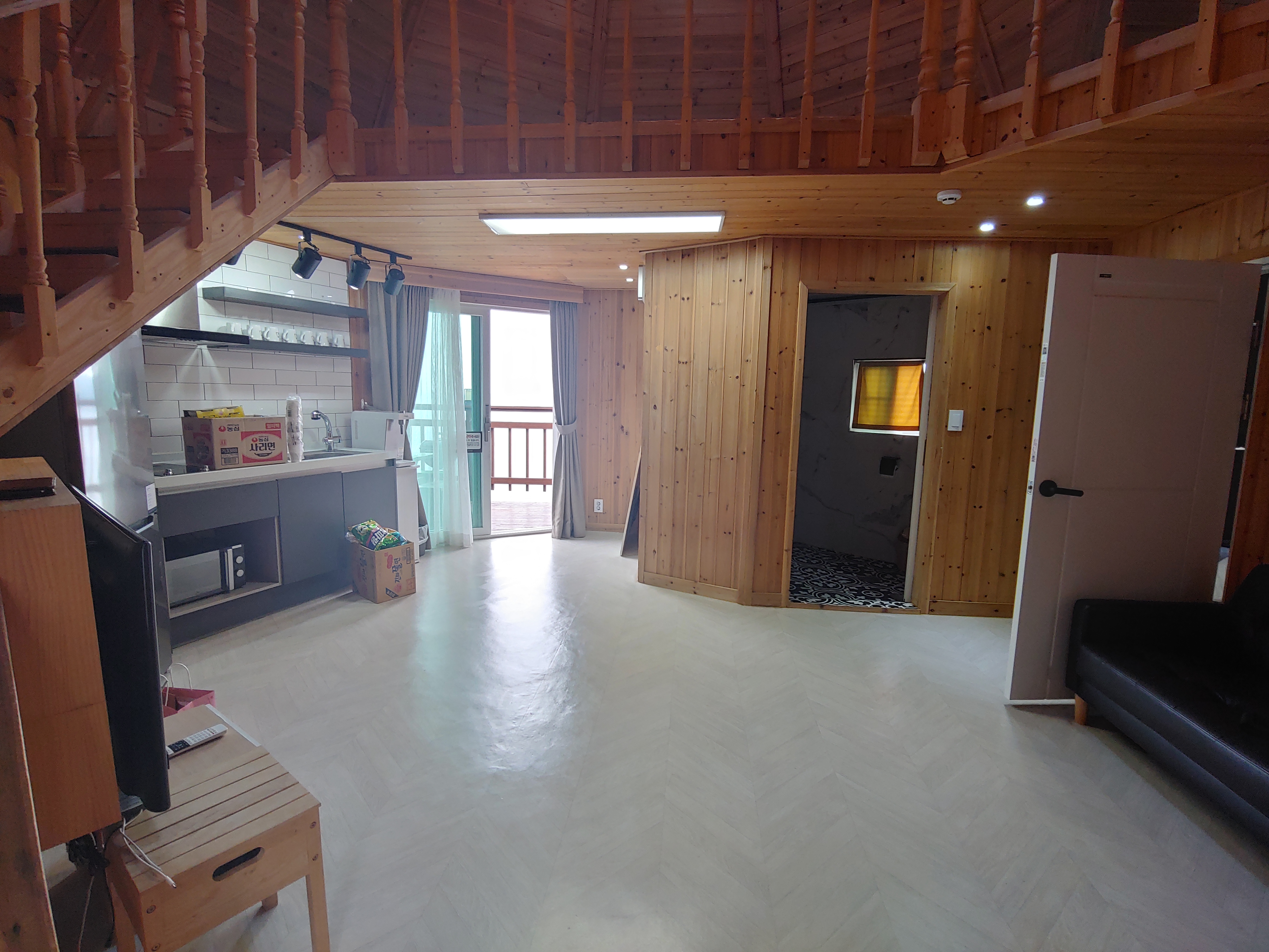편백나무로 만든 복충구조의 펜션인데 들어가는 순간 편백향이 가득한게 너무 좋았어요