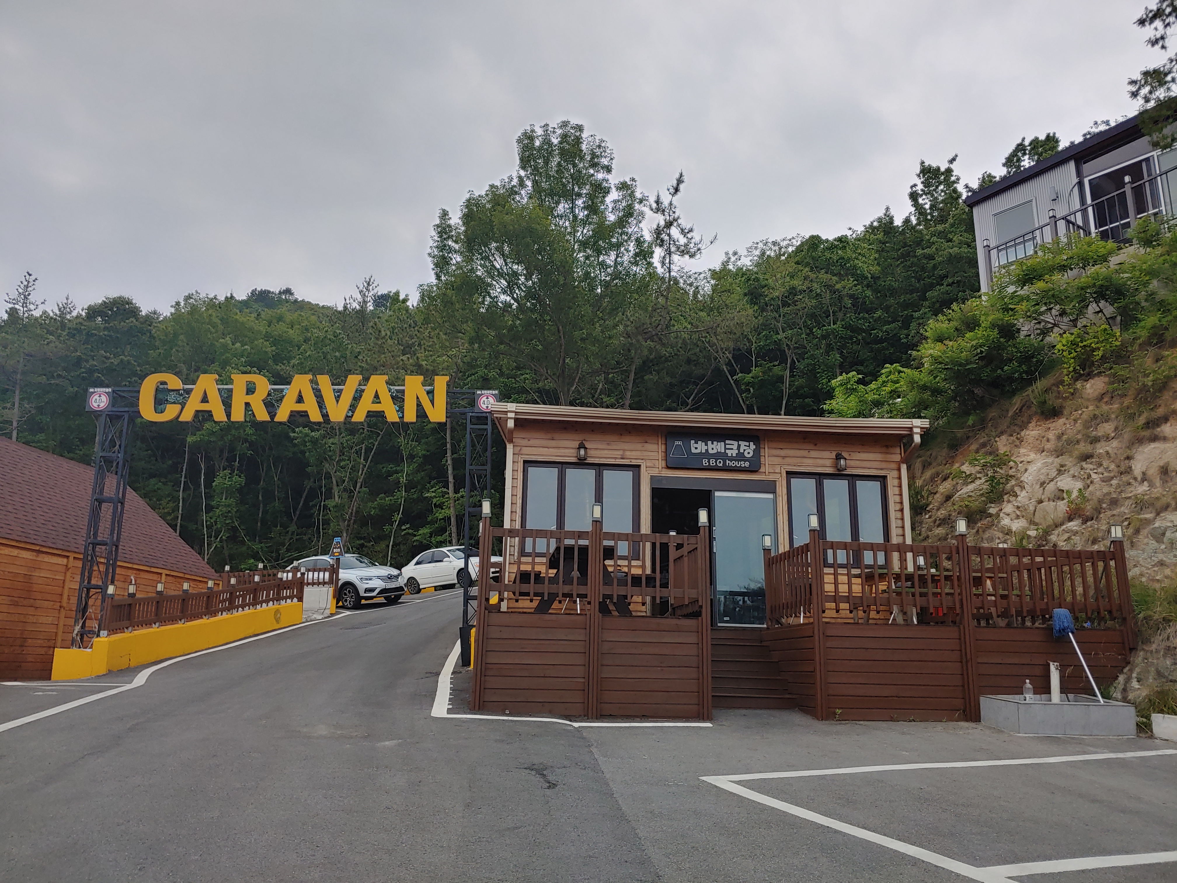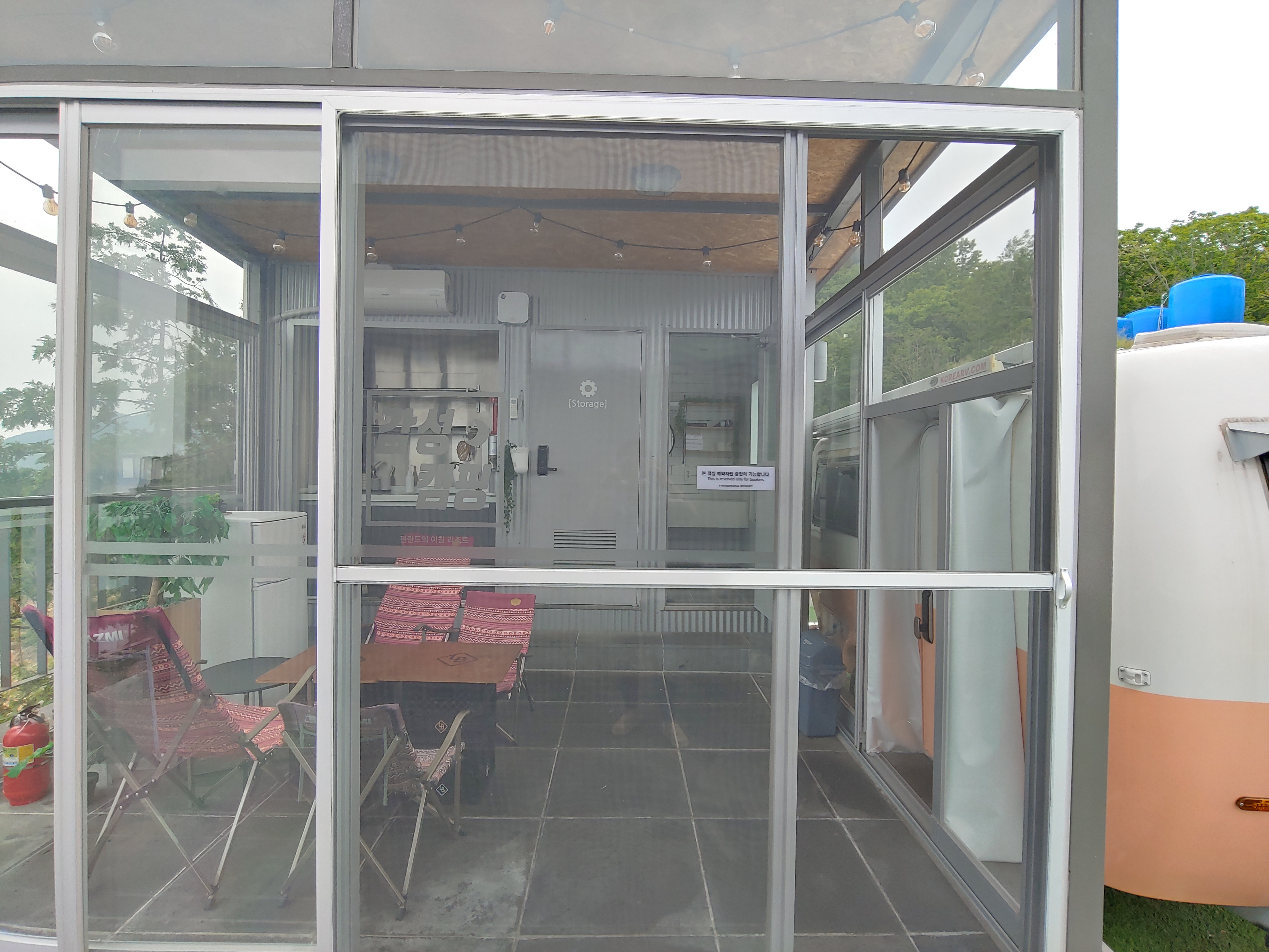 카라반 옆에 개별로 테라스, 욕실, 씽크대도 있어 음식해서 먹는것도 씻는것도 불편하지 않겠어요