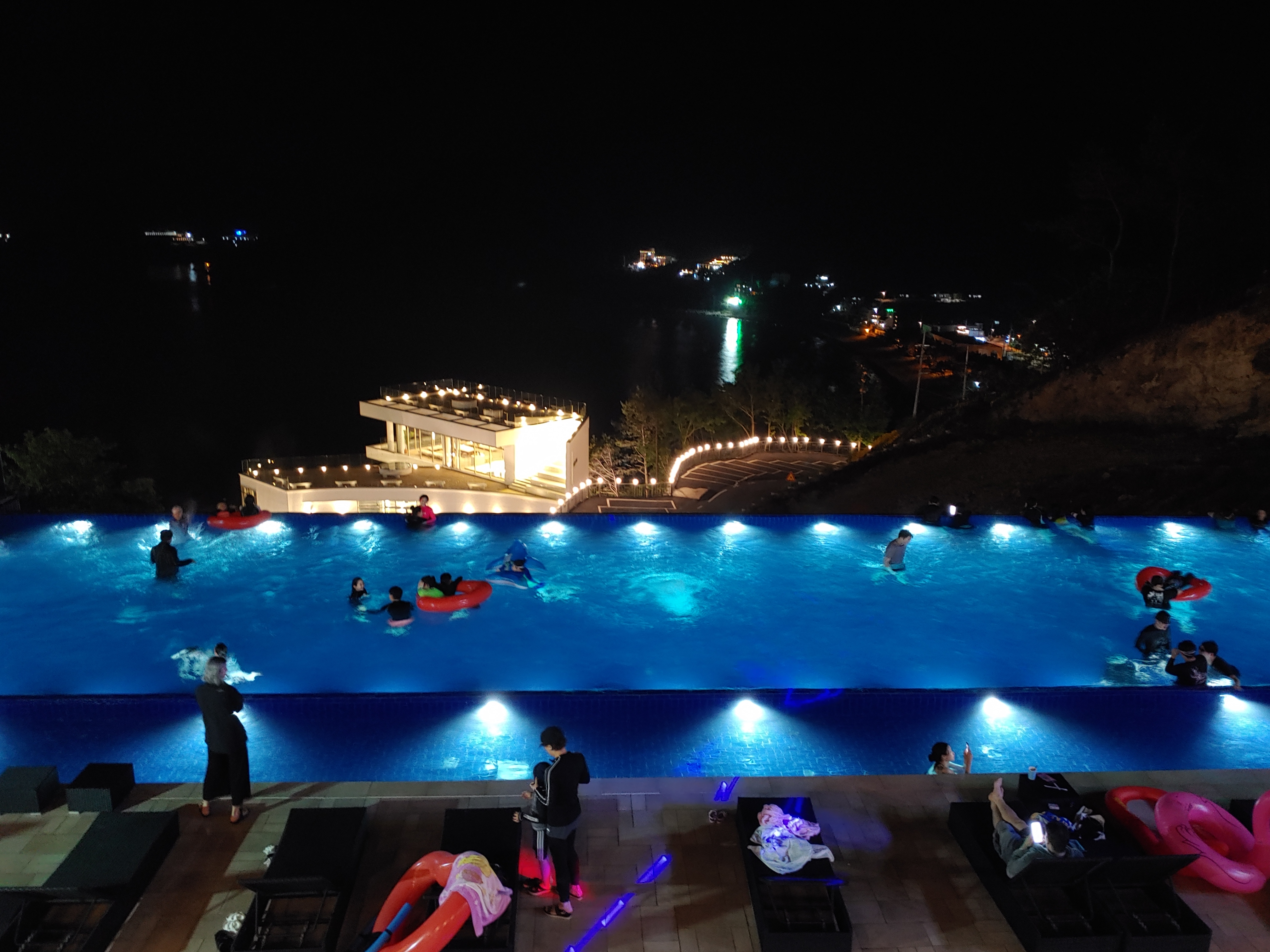 밤이 되면 반짝반짝 빛나는 모이 핀 카페의 조명도 한몫해서 야간 수영도 나름 분위기있고 좋아요