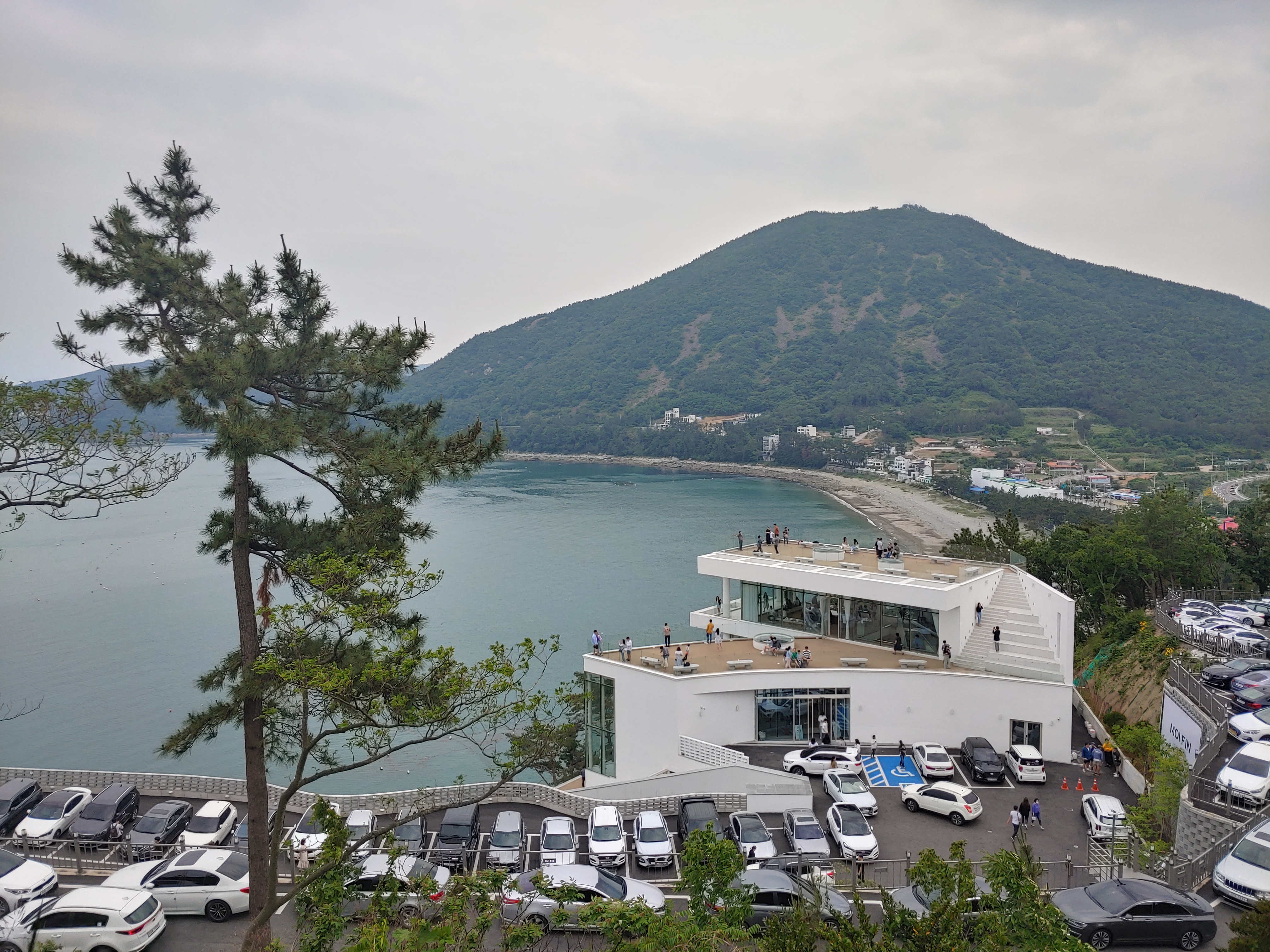 주차되어있는 차만봐도 느껴지죠~ 바다뷰와 하얀계단에서 많이들 찍더라고요