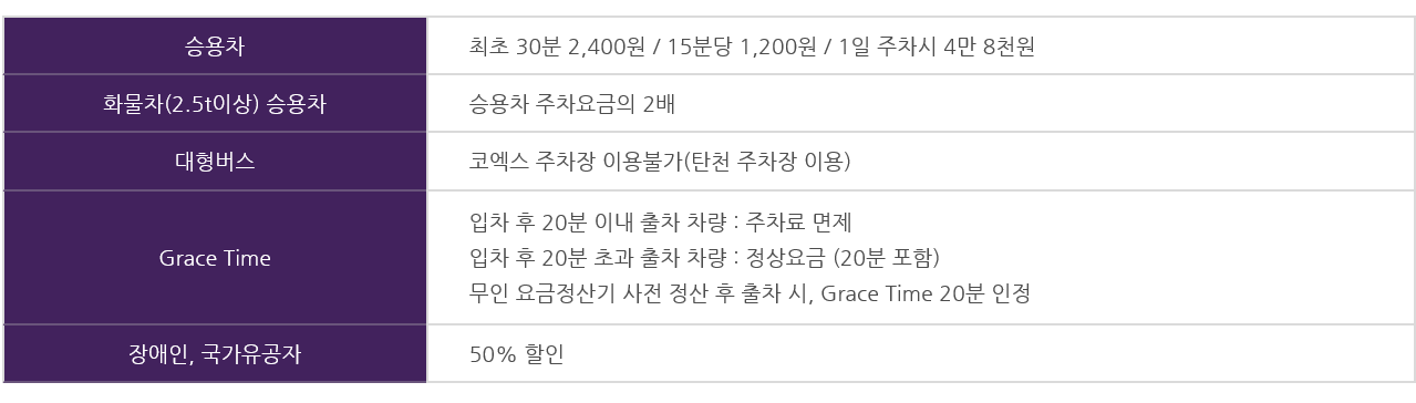최초 30분 2,400원 / 15분당 1,200원 / 1일 주차시 4만 8천원