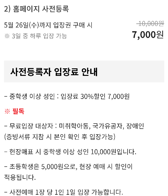 5월 26일까지 사전등록 완료한 1인 입장권 기준으로 사전등록시 할인 받을 수 있어요