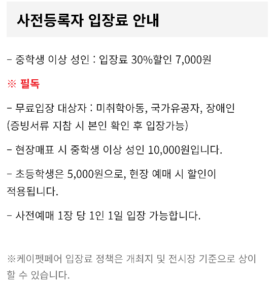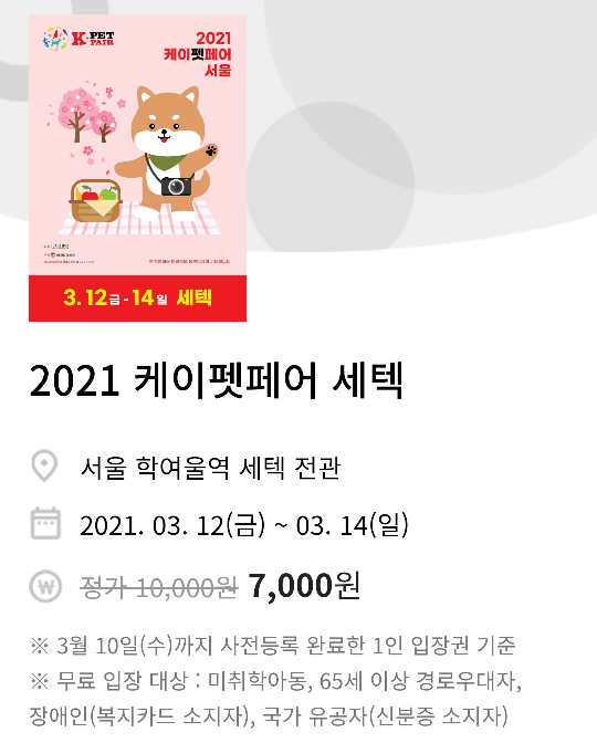 3월 10일까지 사전등록 완료한 1인 입장권 기준으로 사전등록시 할인 받을 수있어요