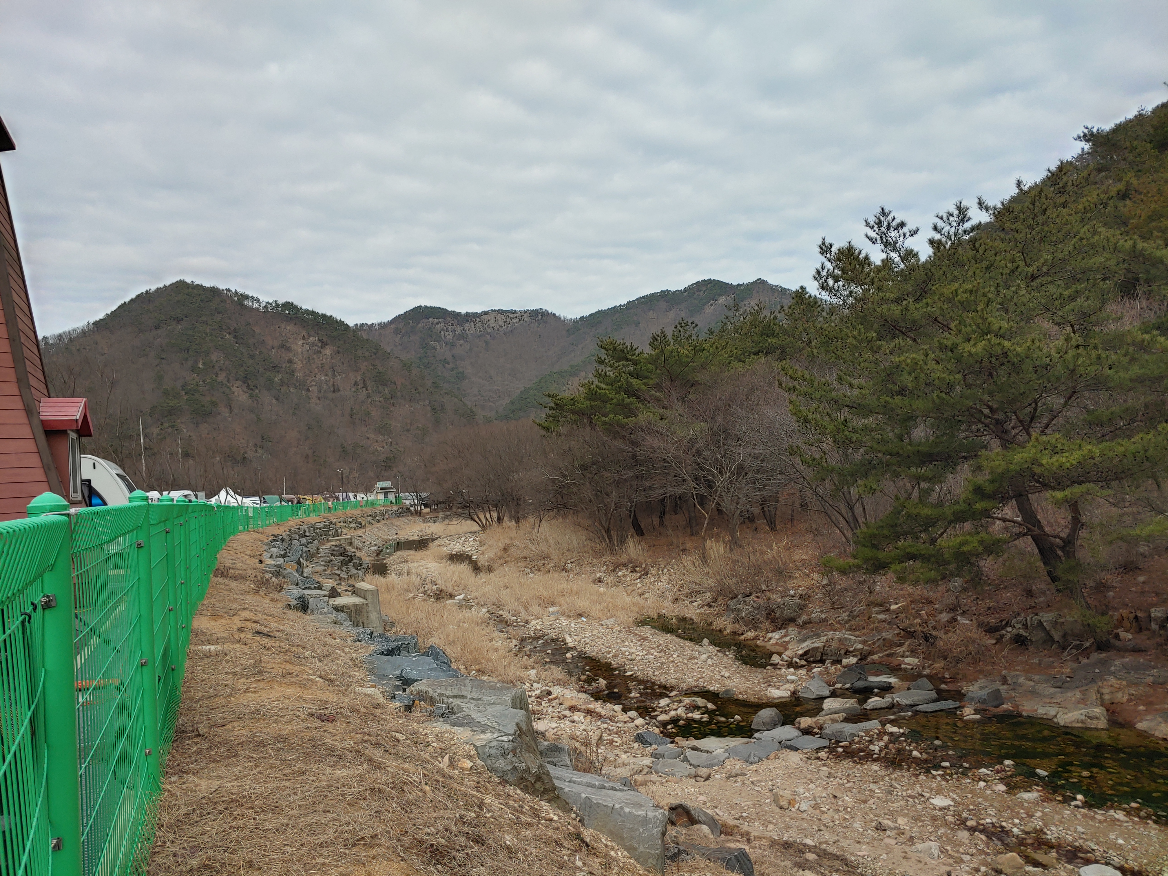 산꽃벚꽃마을 오토캠핑장 사이트 몇 사이트 빼고 일자로 연결되어있어요