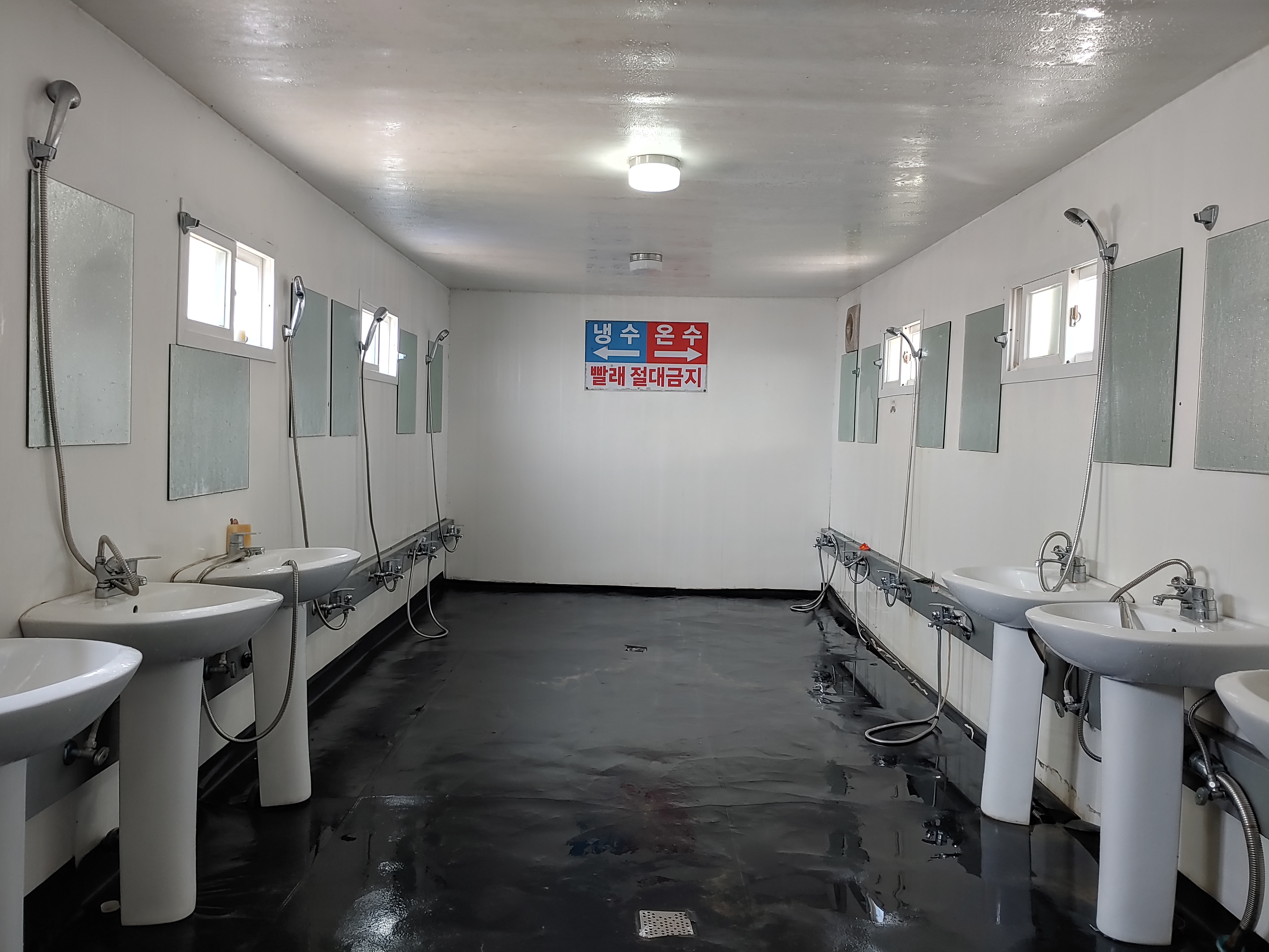 샤워실 바닥과 옷갈아입는곳이 좋은 환경은 아니였지만 온수 하나는 정말 잘 나오더라구요