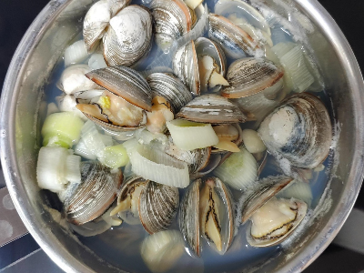 동죽조개탕은 동죽조개 한 번 깨끗이 씻어주고 물과 마늘,파 넣어주면 끝이에요 소금 넣으면 너무 짜서 넣지 않았어요 마늘은 으깨지말고 편으로 잘라서 넣어주면 더 깔끔한 국물을 맛볼수있어요 매콤함을 원한다면 청양고추 넣어주면 좋아요