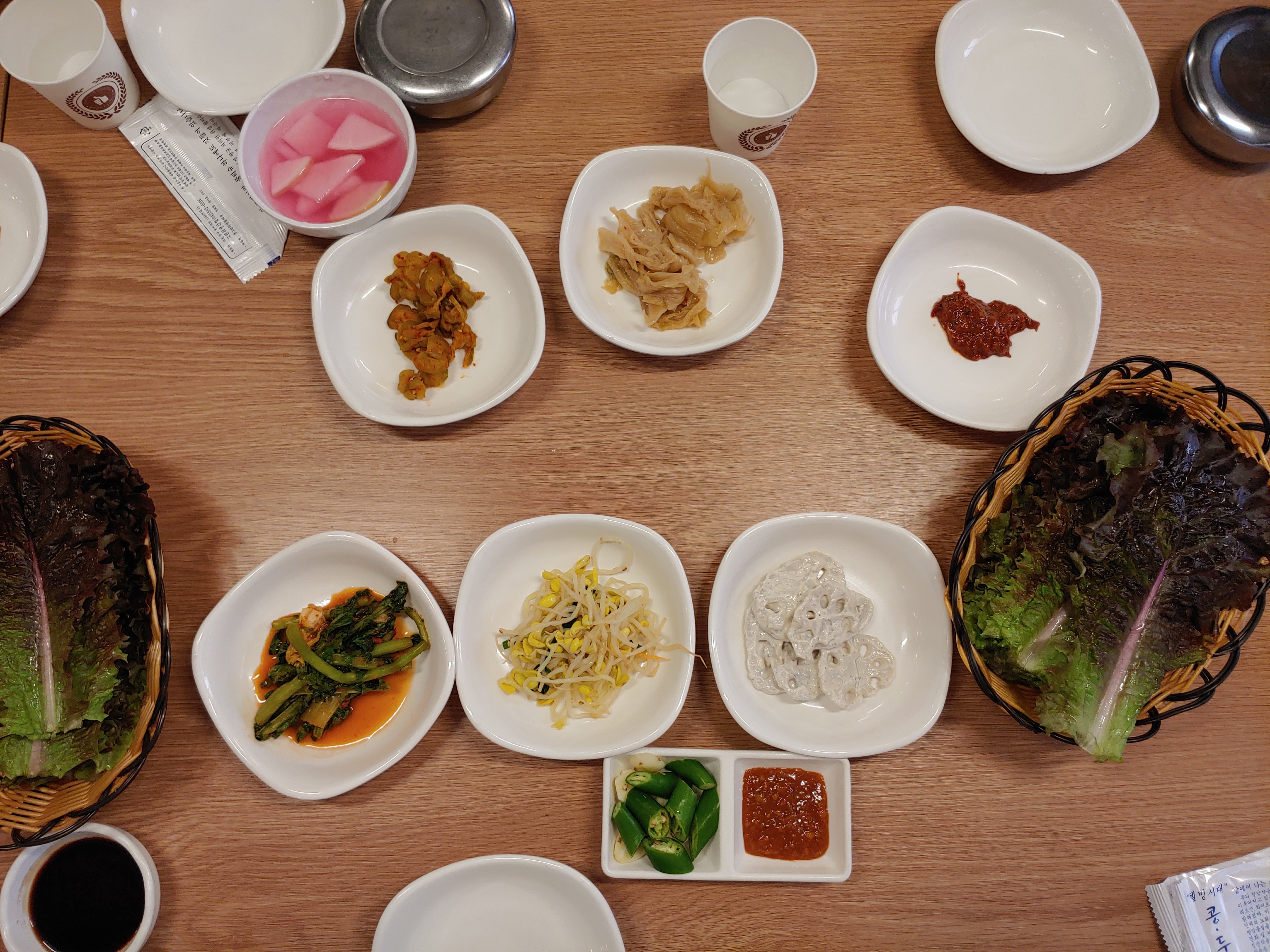 수리산 두꺼비 반찬류는 들깨연근하고 콩나물 무침, 열무김치와 쌈 등이 나와요