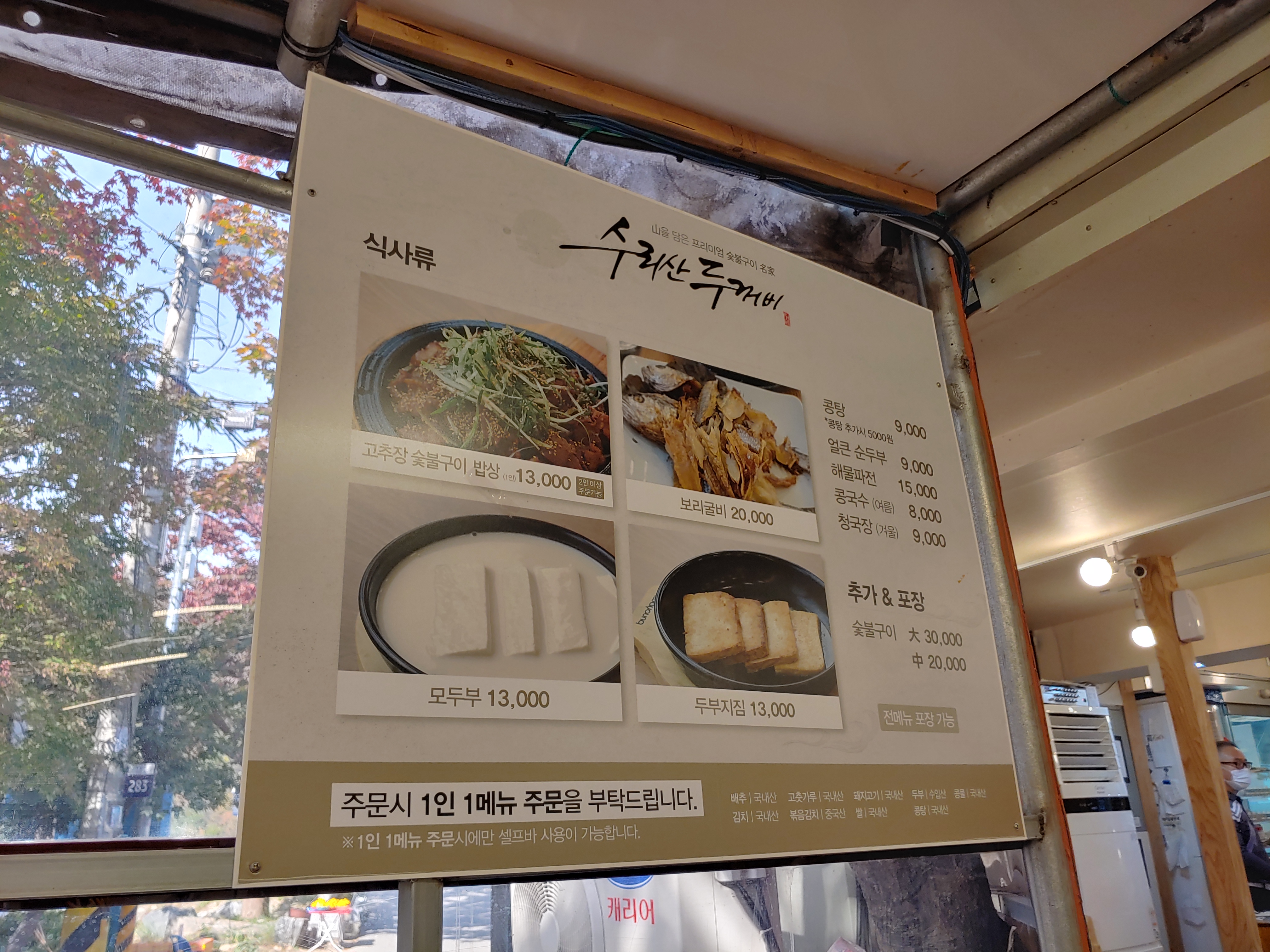 수리산 두꺼비 콩탕 정말 맛있는데 고추장 숯불구이 밥상 주문하면 나와서 따로 주문하지는 않았어요