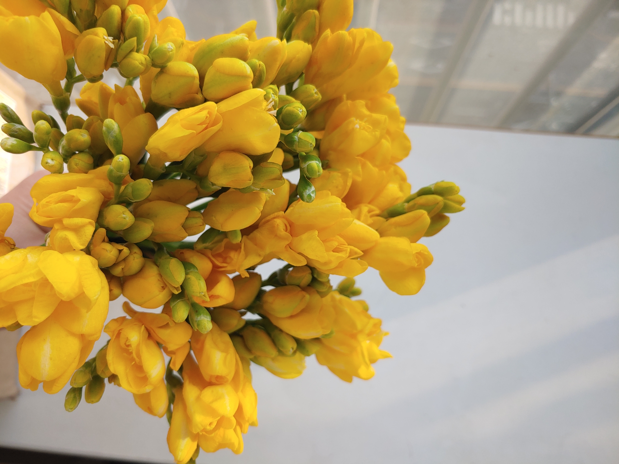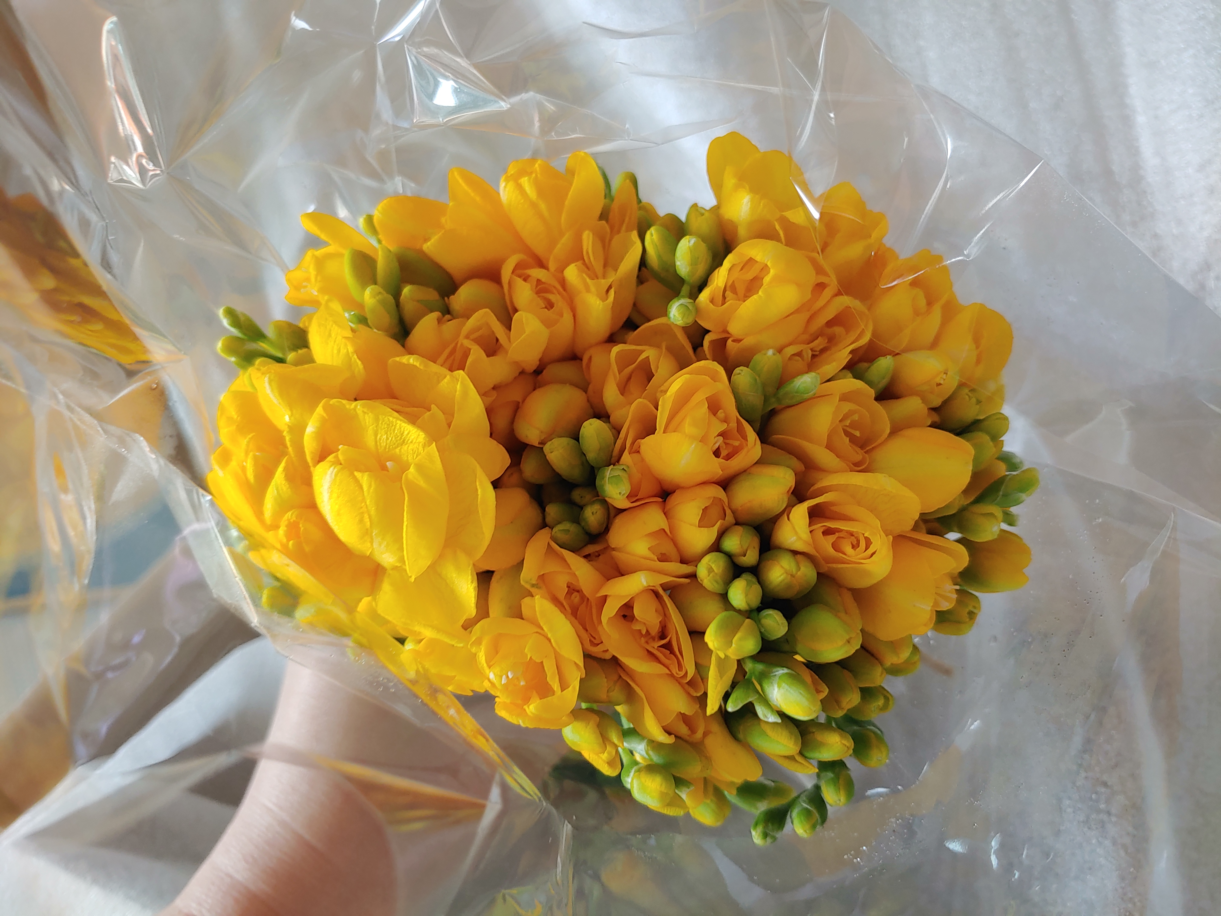 활짝핀 프리지아 보냈다면 더 이뻤겠지만 몽오리 프리지아가 많은게 천천히 오랫동안 프리지아 꽃향기 맡을 수 있어 더 좋은것 같아요