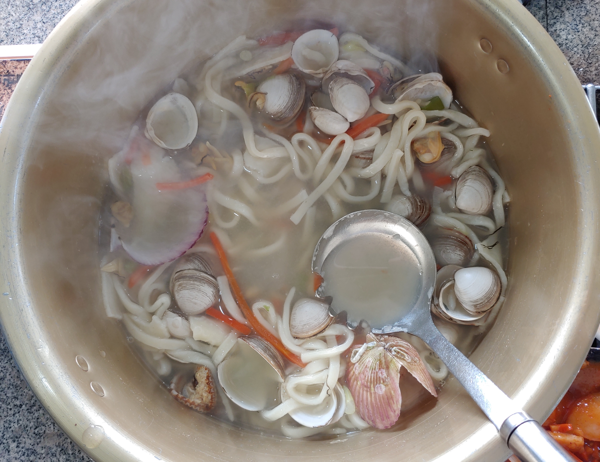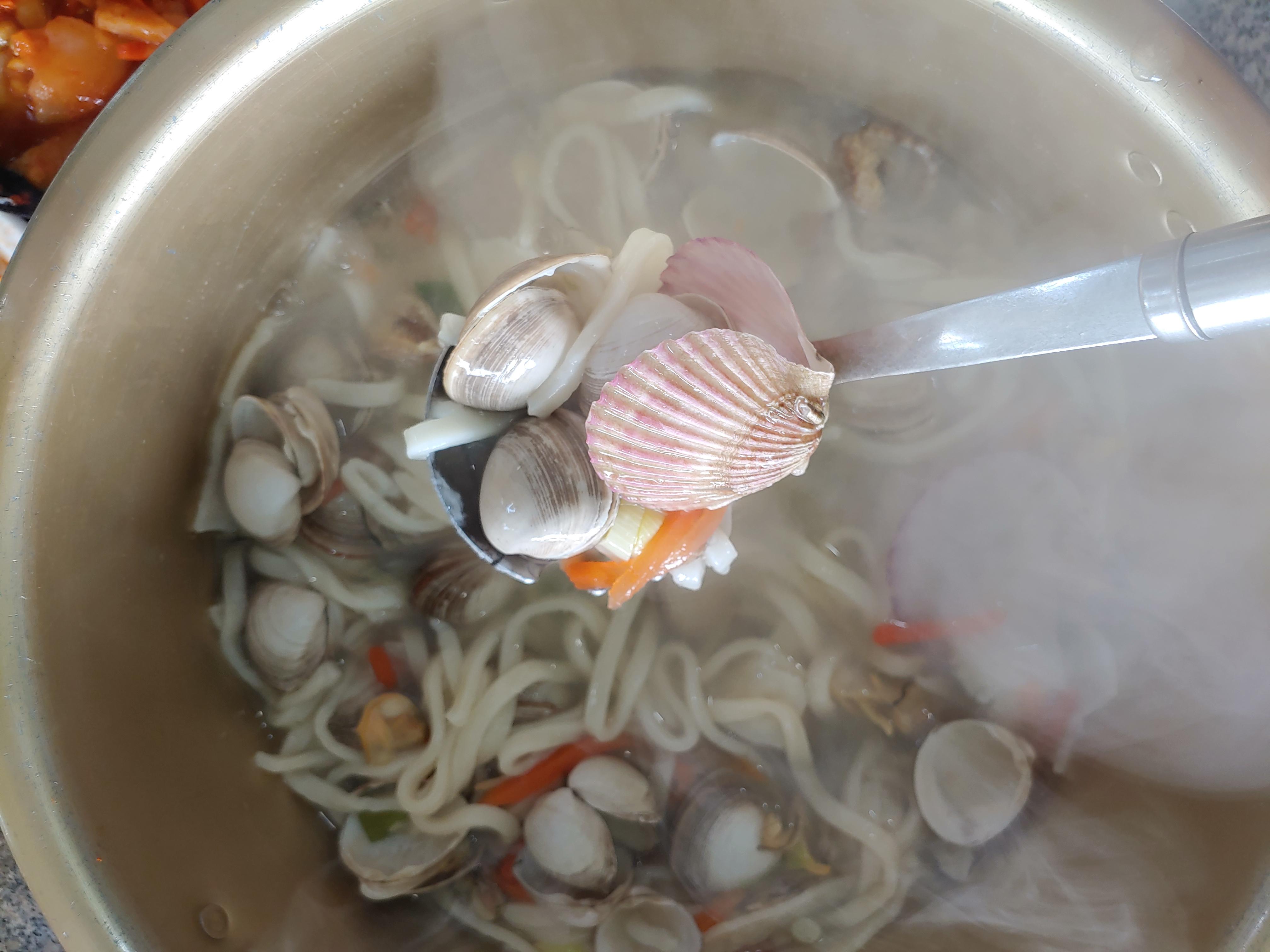 칼구수면보다 조개가 더 많이 들어가 있을 정도로 해물칼국수에 조개들 푸짐하게 들어가있어 조개 까먹는 재미도 있고 칼구수양도 많이 나와서 조개구이 말고도 해물칼국수 먹으러 가도 좋아요