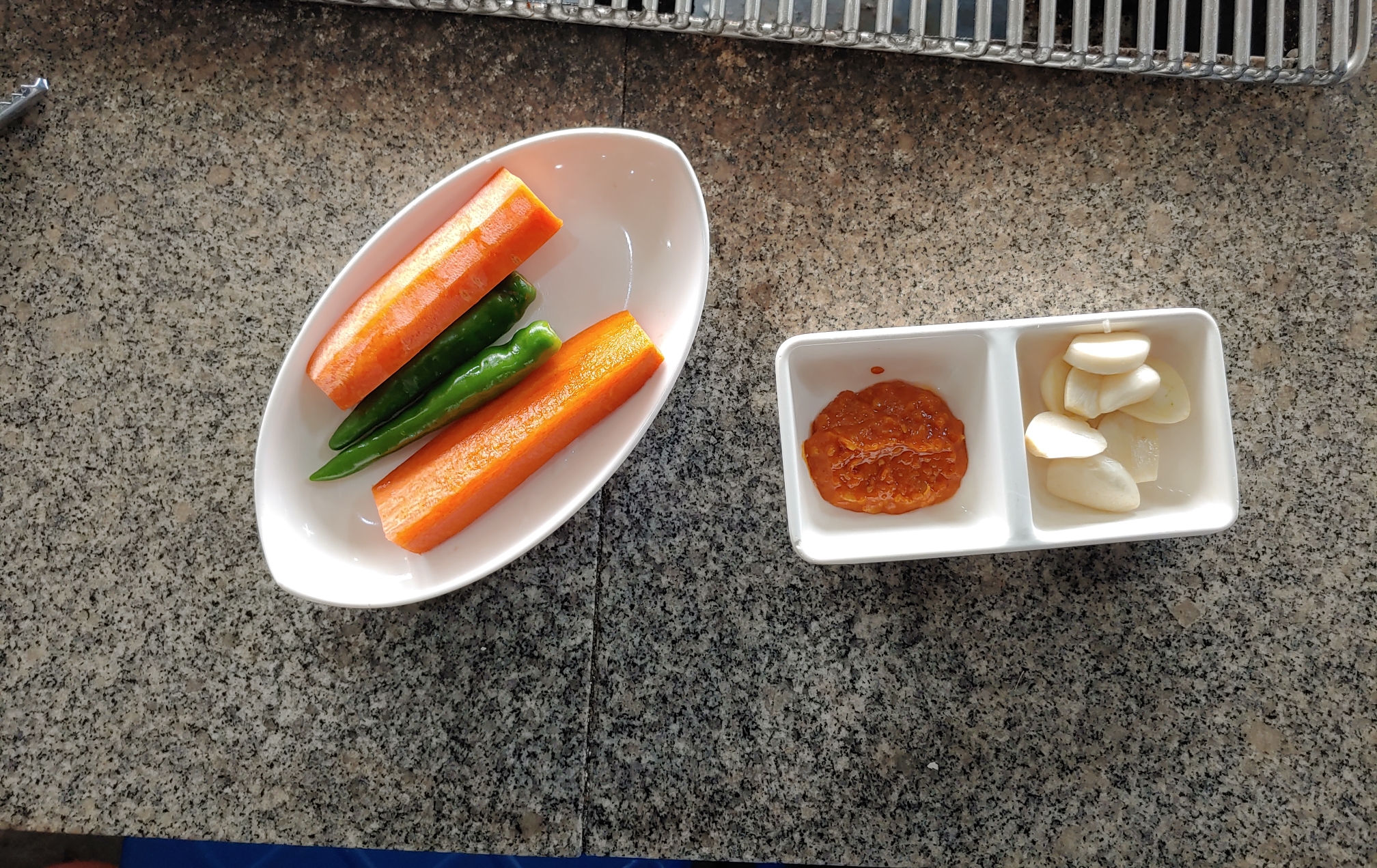 조개구이 반찬은 당근과 고추 마늘과 쌈장이 끝이에요