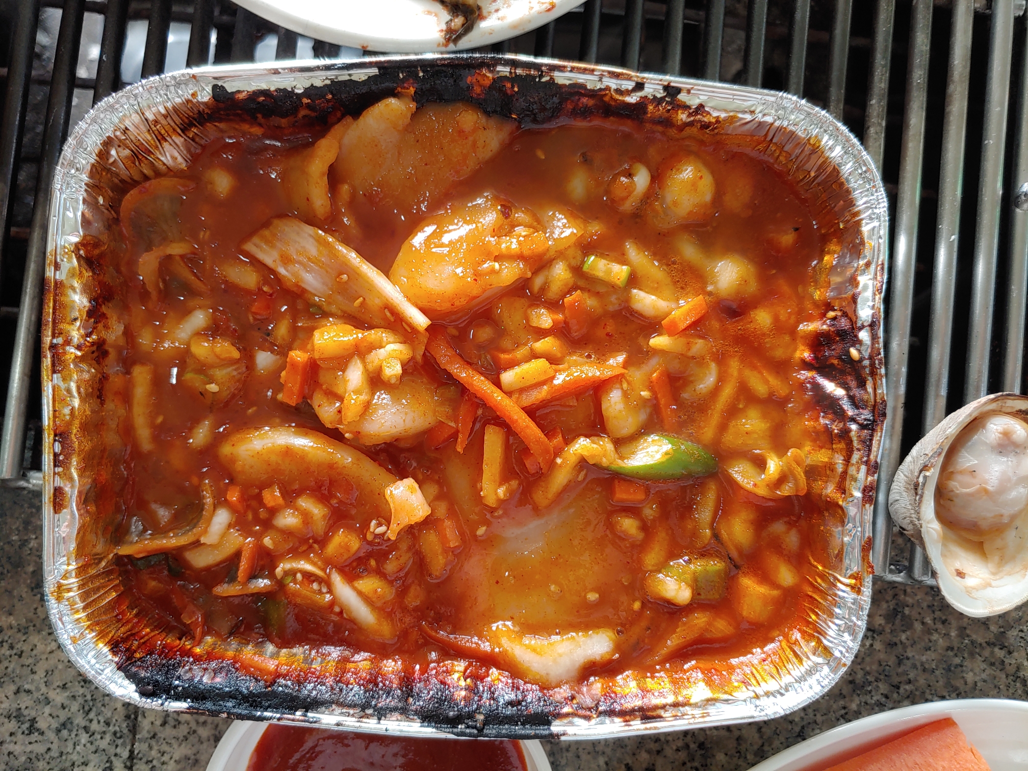 키조개는 사각호일에 넣어서 지글지글 익혀서 먹으면되는데 키조개에 양념과 고추 마늘이 다 얹져나와 따로 양념 더 할필요없이 간단하게 먹을 수 있어요