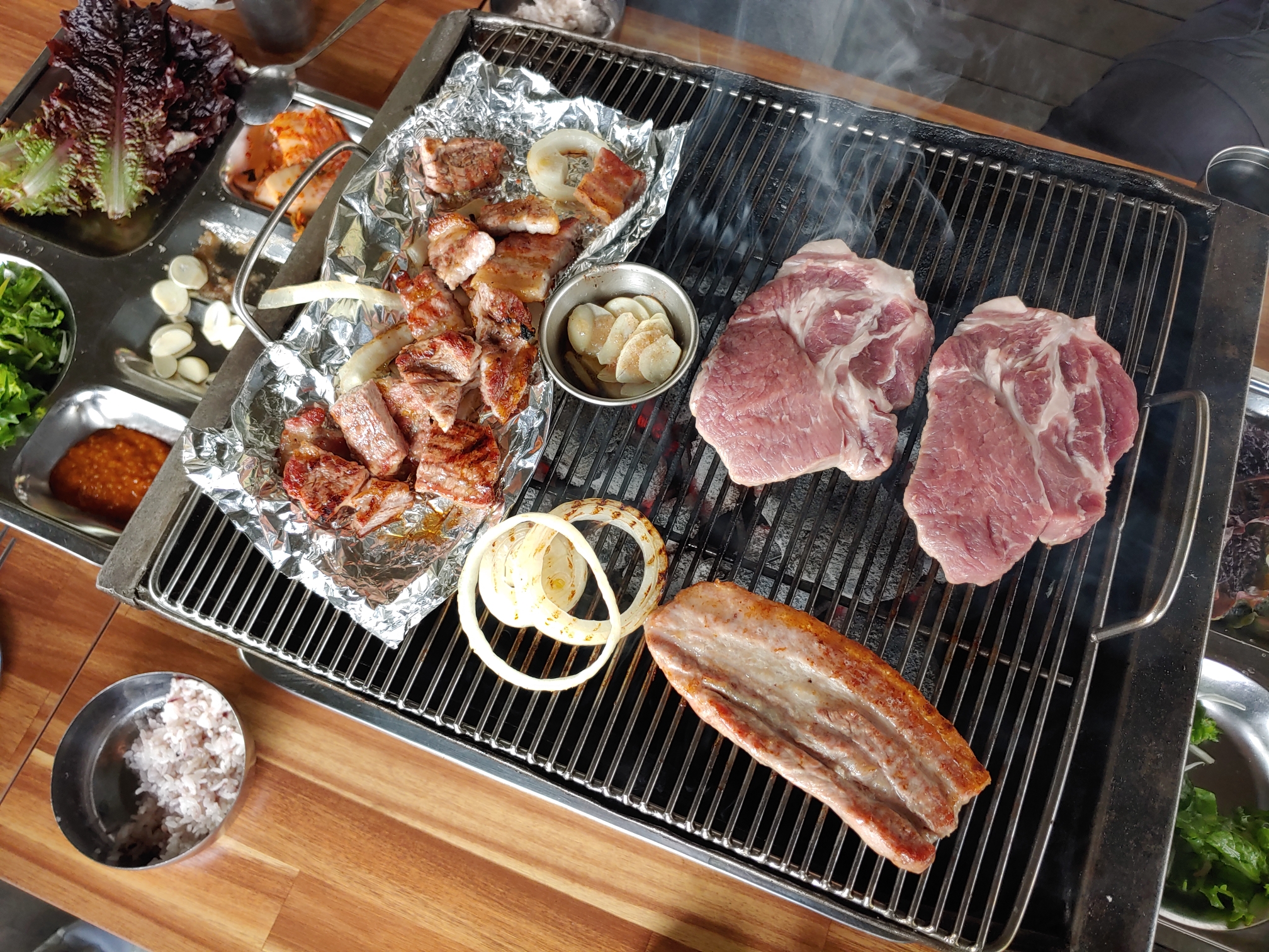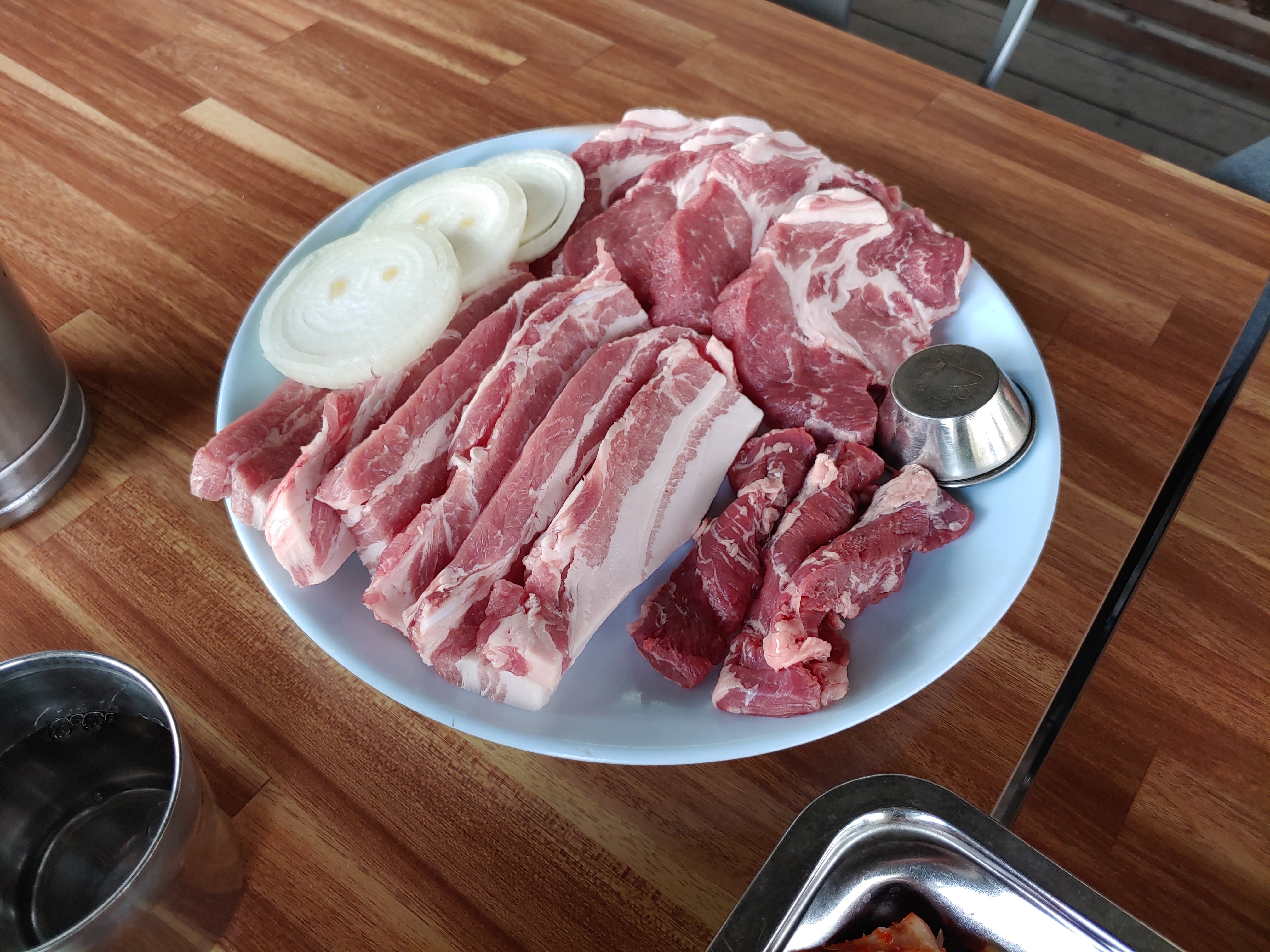 소고기도 맛있지만 돼지고기도 신선하고 맛있어서 돼지고기와 된짱찌개 주문했는데 사람이 몰릴때면 주문하는데 너무 오래걸려서 필요한게 있으면 미리 주문해야 시간 낭비를 줄일 수 있어요