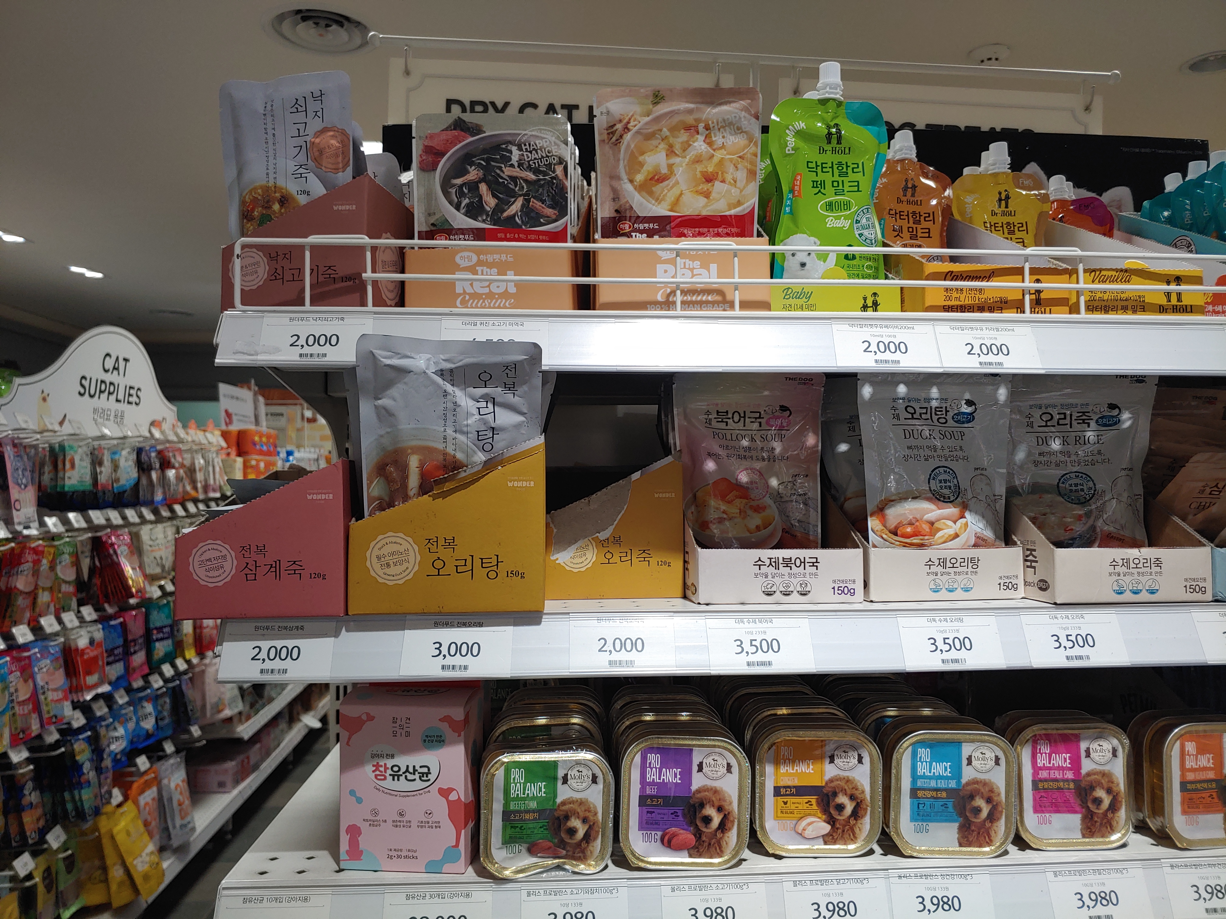 강아지 사료도 건식사료, 수제사료, 습식사료 등과 강아지 간식 껌, 비스킷, 육포 등 댕댕이한테 사주고 싶은거 한가득 있더라구요
