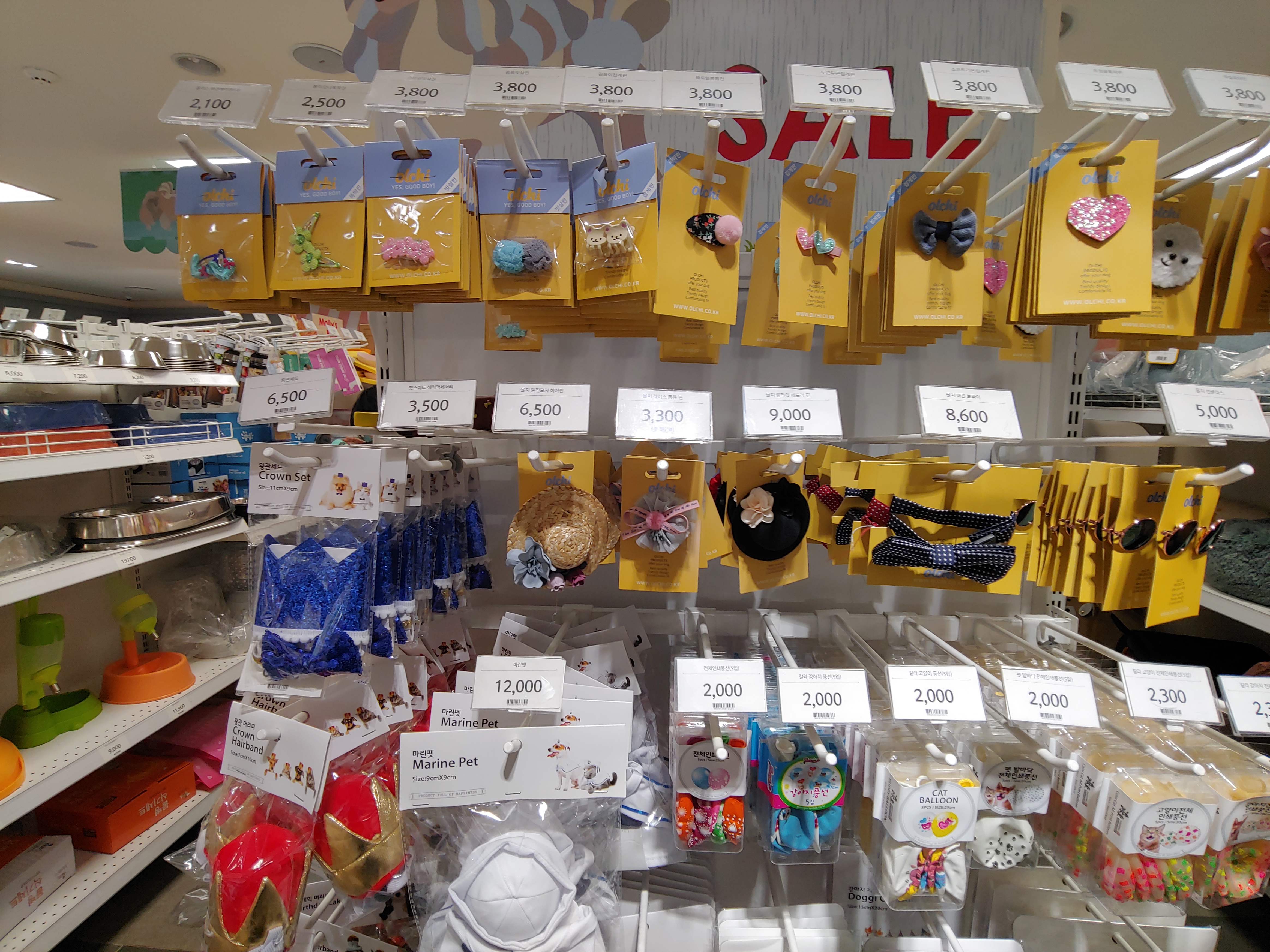 아기자기한 댕댕이 액서사리들과 귀여운 댕댕이 가방, 반려동물 마스크도 있어요
