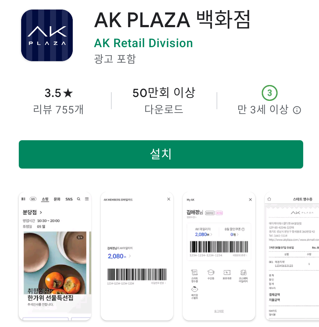AK플라자 APP 실행 혹은 m.akplaza.com 접속해서 다운 받으세요