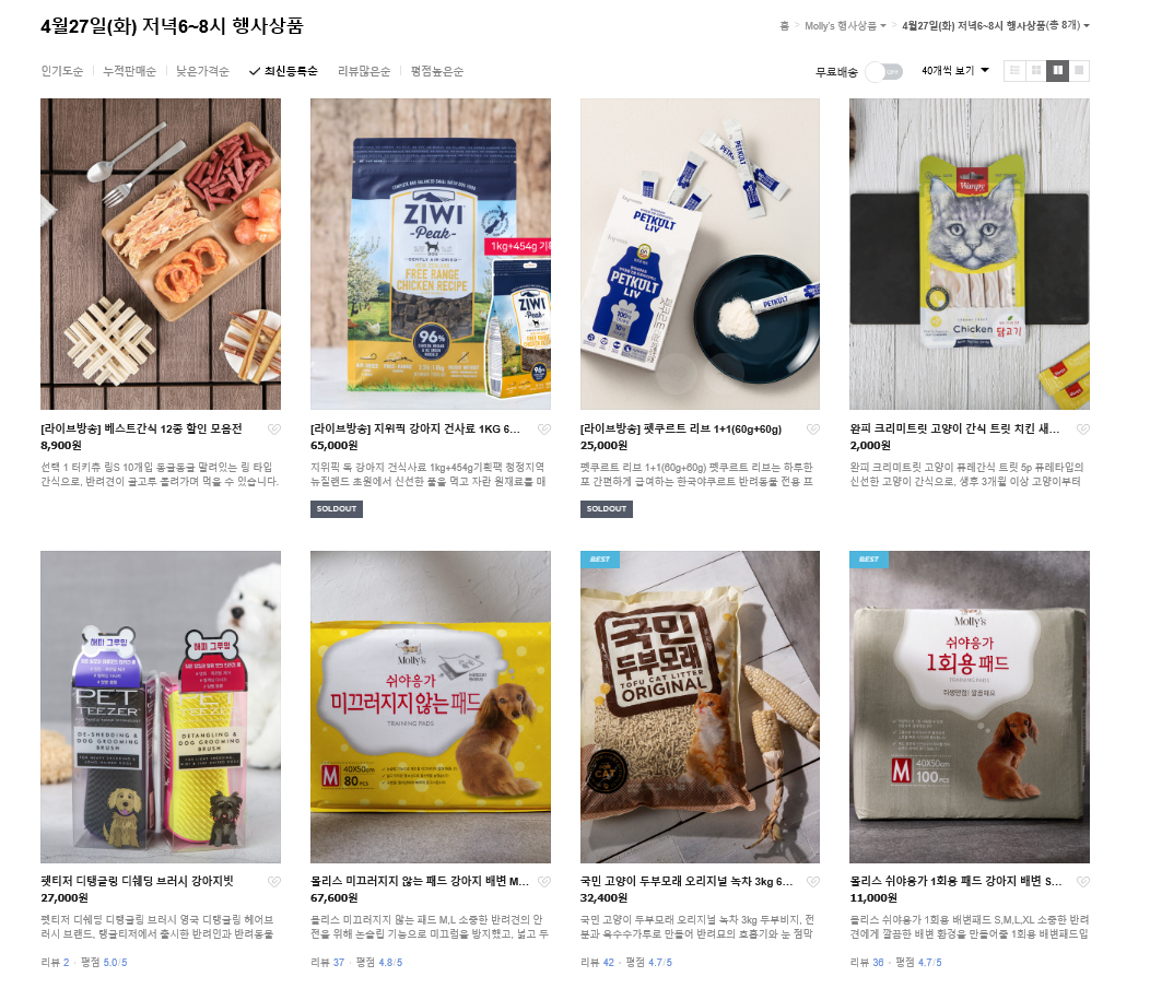 베스트 간식 12종과 강아지 건사료 고양이 간식 등 다양한 몰리스 상품을 특가에 만나 볼 수 있고 전문가와 함께하는 반려동물 특강 및 Q&A도 함께 진행한다고해요
