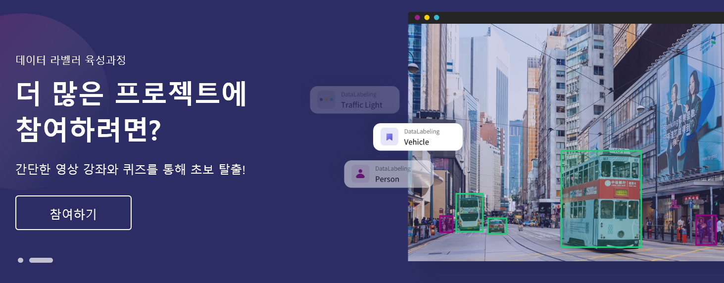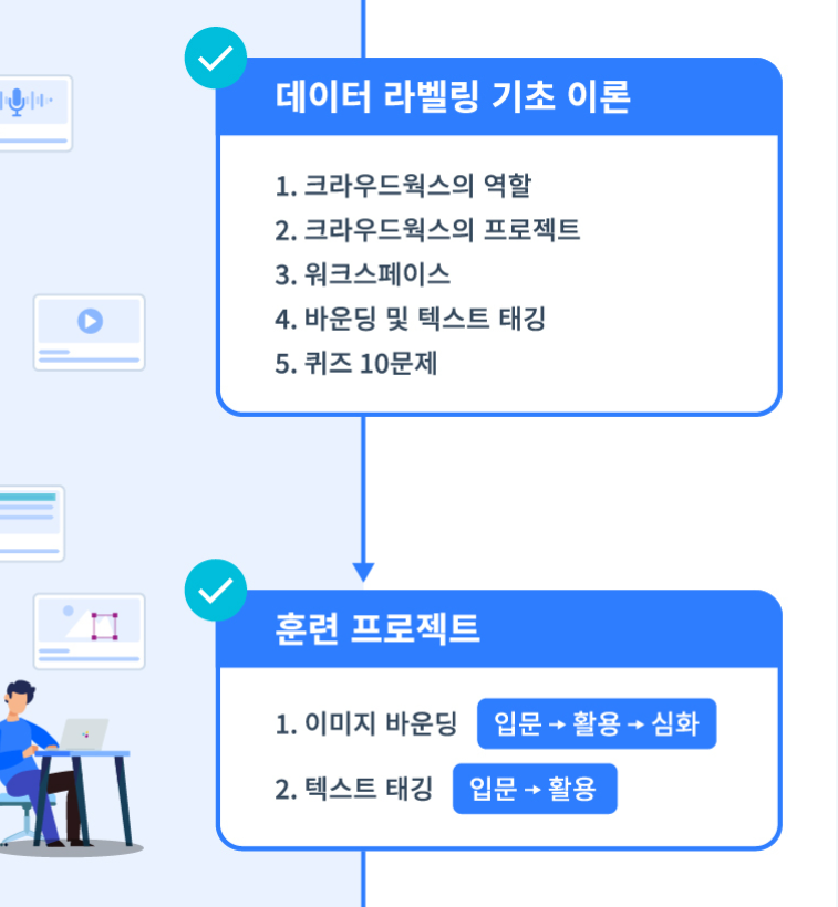데이터 라벨러 육성 과정은 처음 데이터 라벨링 기초 이론 듣고 퀴즈10문제를 풀면 훈련 프로젝트를 할 수 있어요