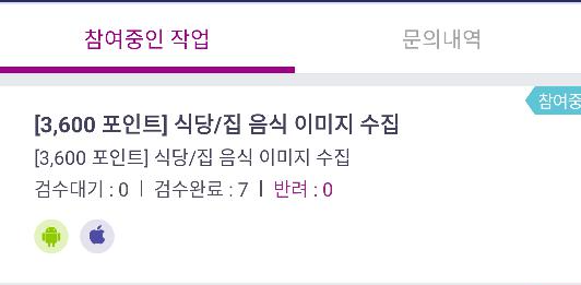 데이터 라벨라 육성과정 끝내고 참여한 프로젝트인데요 식당/ 집 음식 이미지 수집 프로젝트 같은 경우 식사는 매번 하니까 프로젝트 가이드 꼼꼼하게 읽고 가이드에 맞게 작업하면 한번의 참여로 3,600원의 포인트를 받을 수 있는 만큼 괜찮은 프로젝트들도 있어요