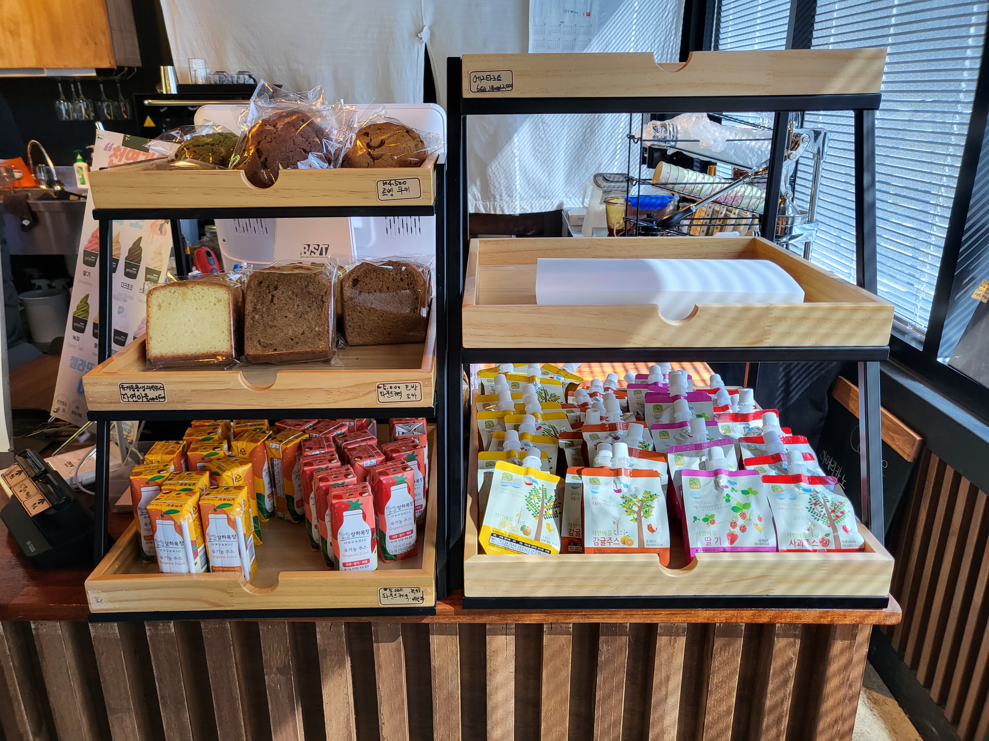 음료와 아이스크림 그리고 빵과 쿠키등이 준비되어있어요