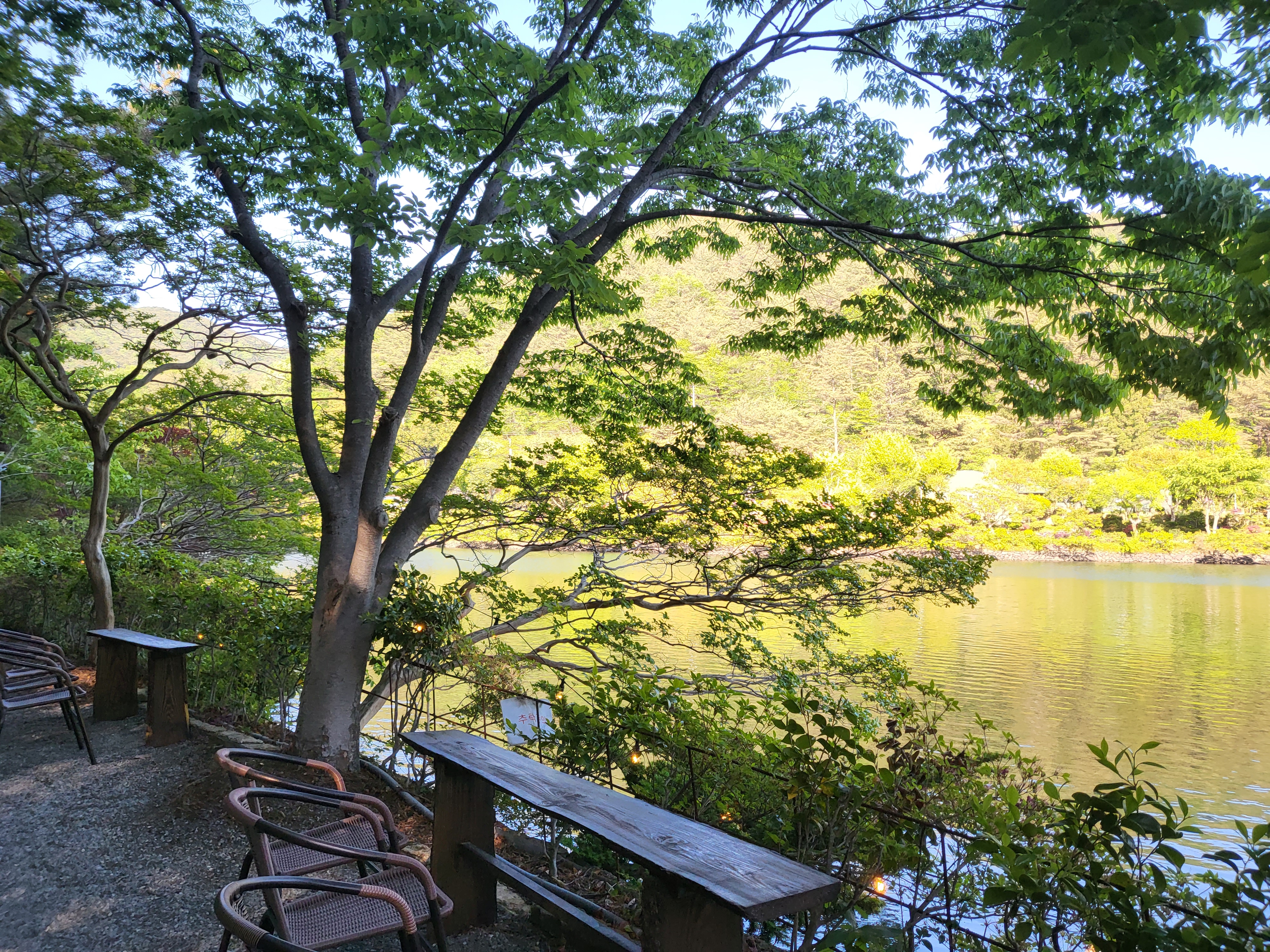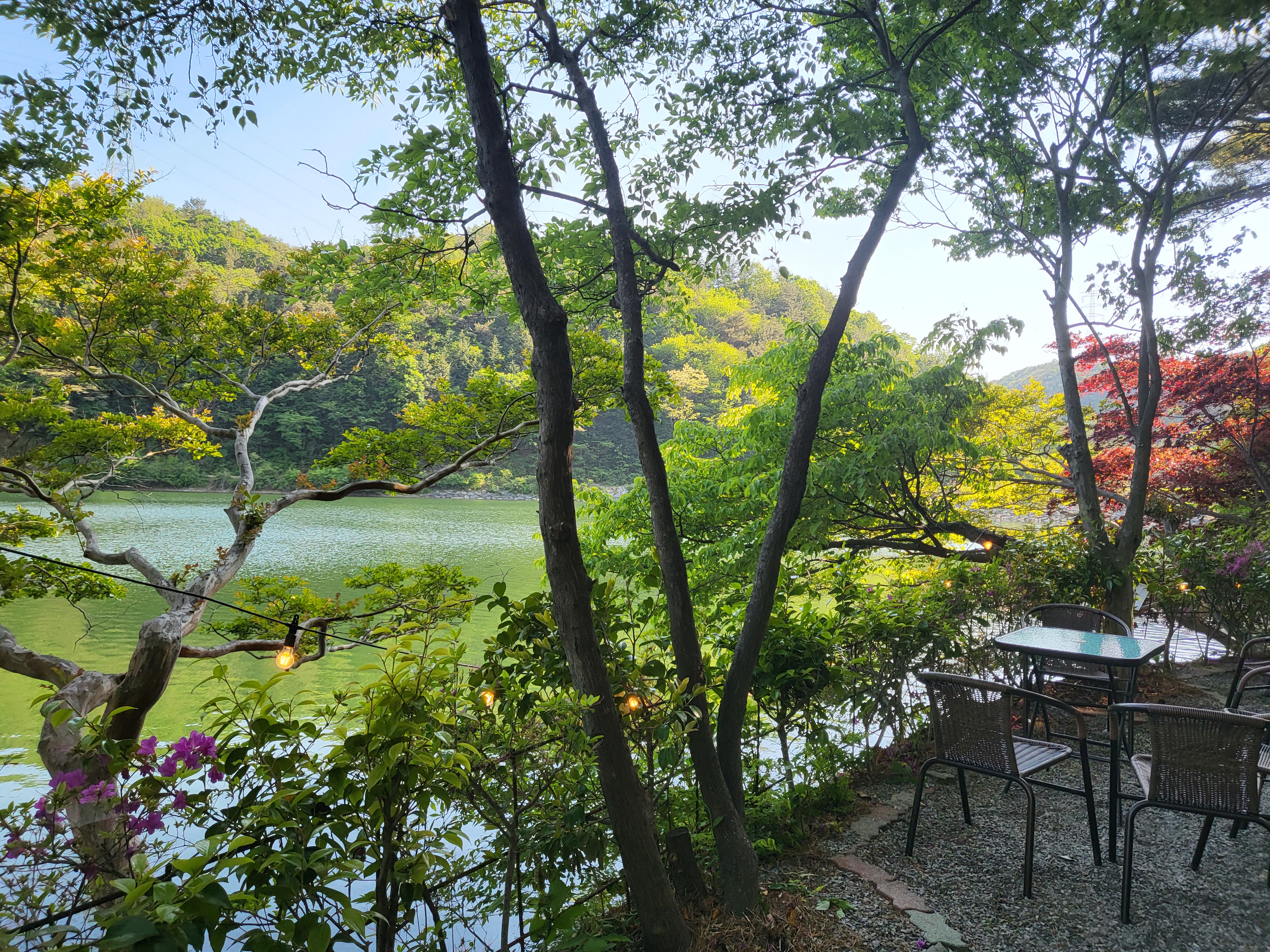 야외 어느 테이블에 앉아도 잔잔한 호수보며 물멍하기에 안성맞춤이에요