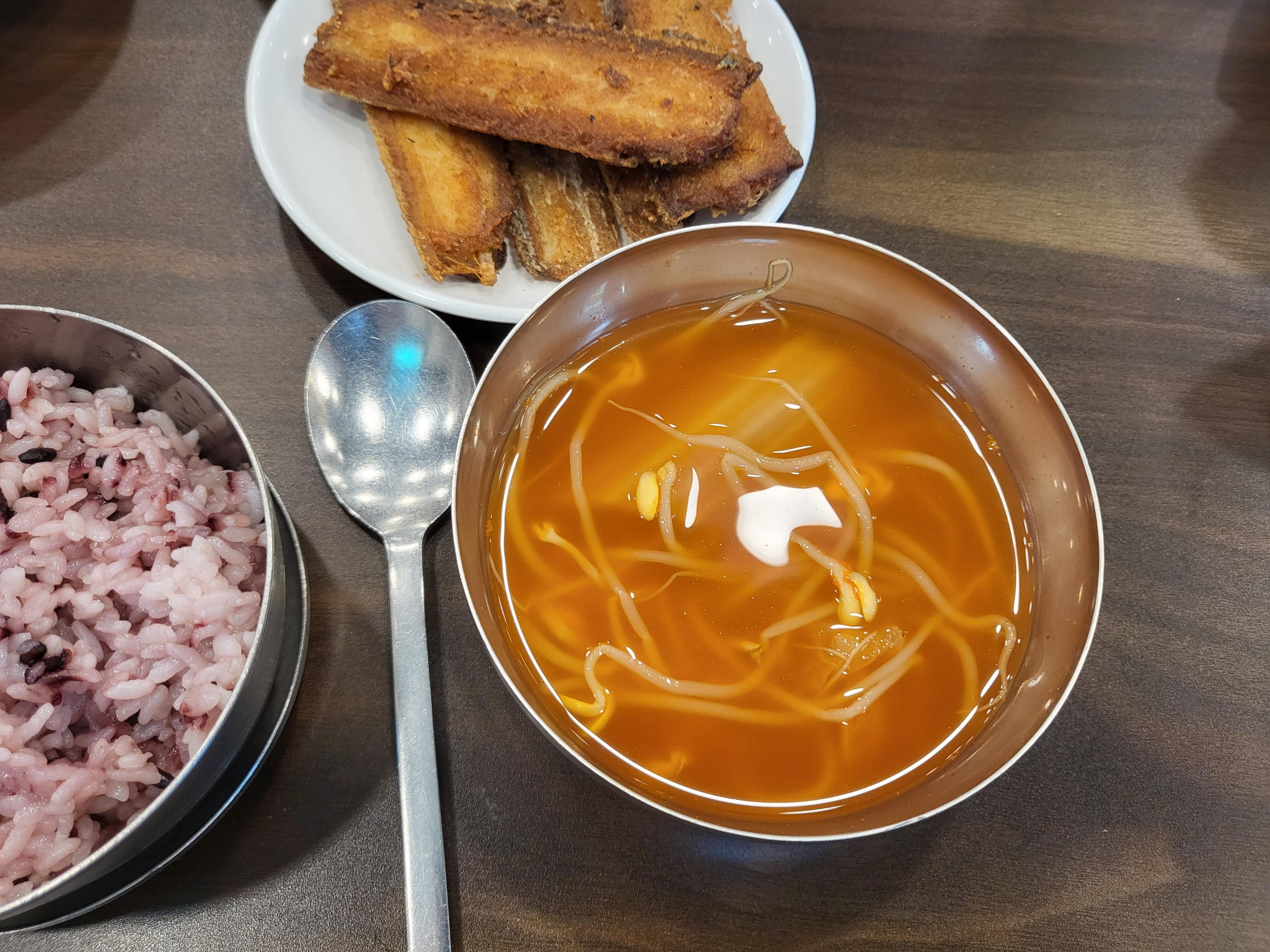 느끼해질 수 있는 갈치구이에 딱 맞는 김치콩나물국은 시원한게 그냥 먹어도 맛있었어요