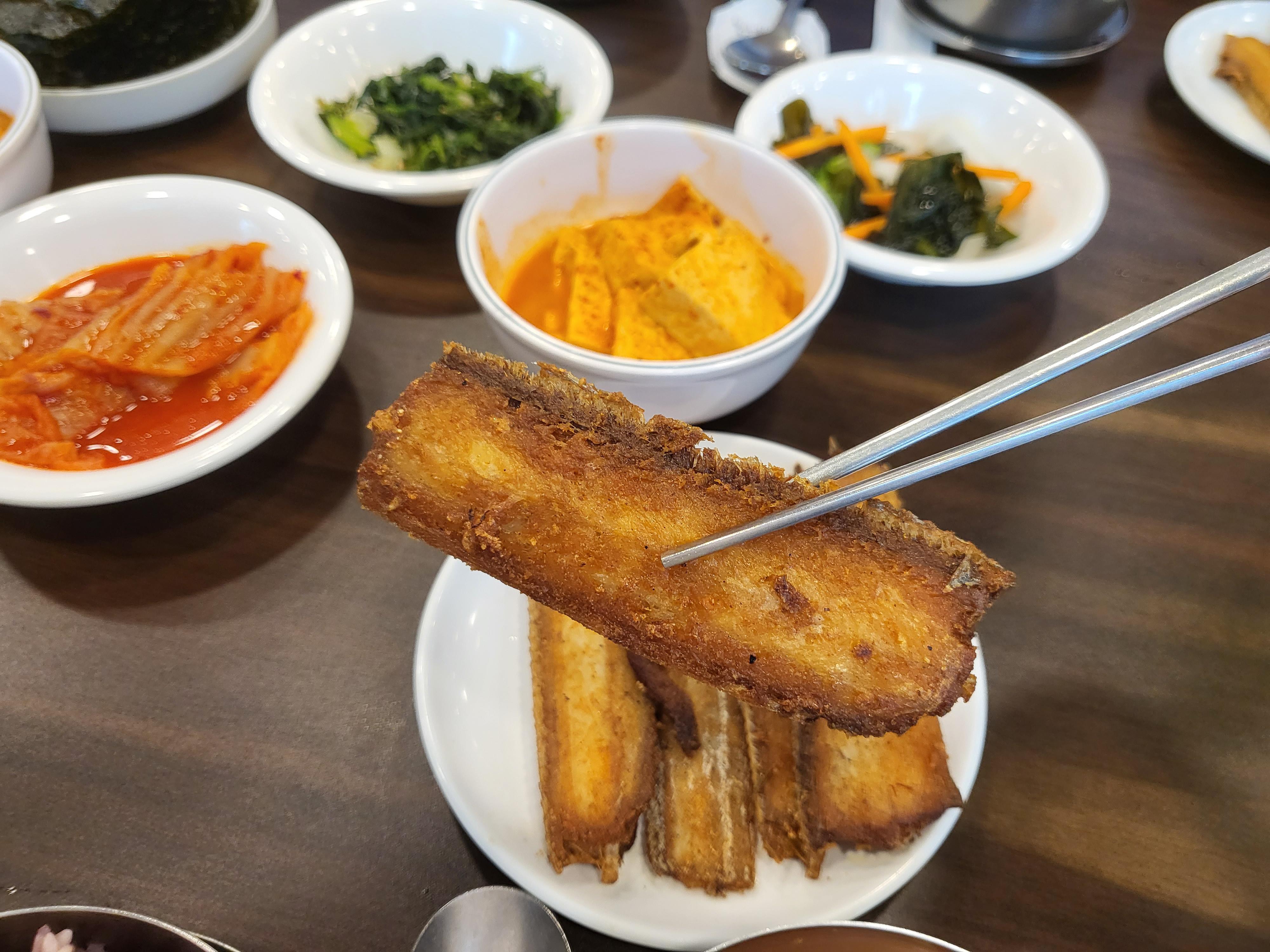 나물과 김치, 젓갈, 어묵, 두부조림 등 여러종류의 반찬들이 11가지가 있어서 이것저것 먹다보면 반찬으로 배채울듯 하지만 갈치를 먹으러 왔으니 갈치에 집중하기