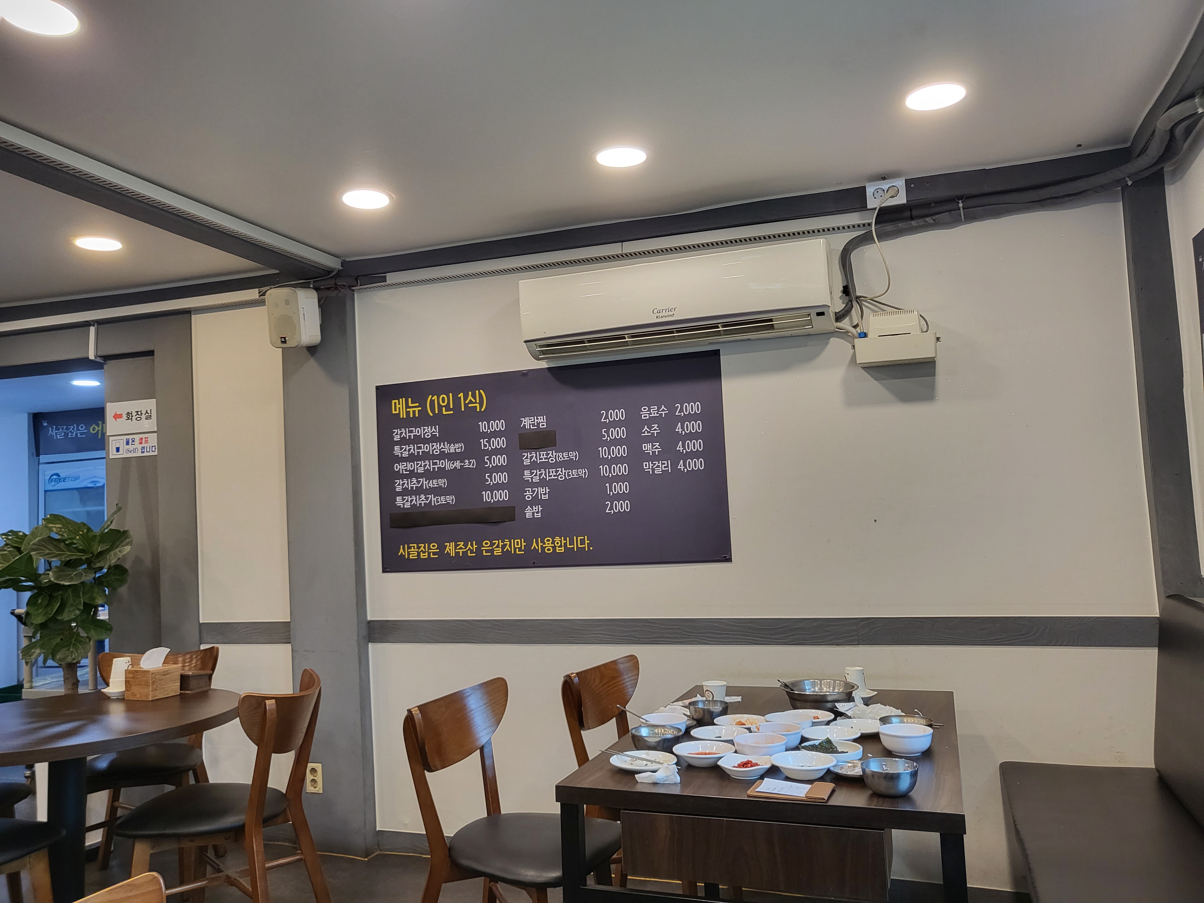 고소하면서 담백한 제주산 은갈치를 맛볼 수 있는곳인데요 오랫만에 갔더니 요즘 식당에서 많이들 좌식에서 식탁으로 바뀌고 있듯이 둥근상 시골집도 식탁으로 분위기 전환했더라구요