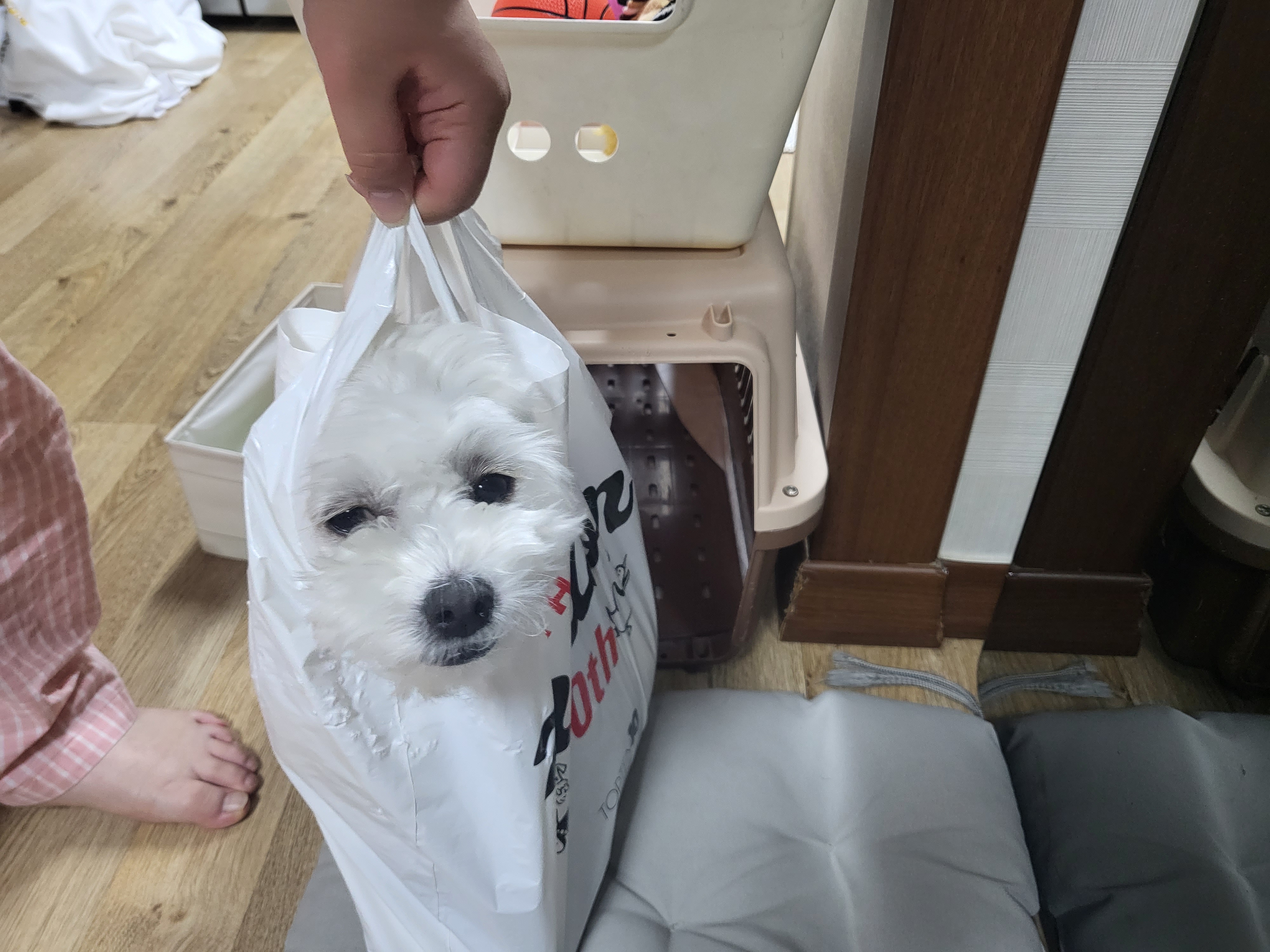 어디든 들어가기 좋아하는 강아지 말티푸 겨울이