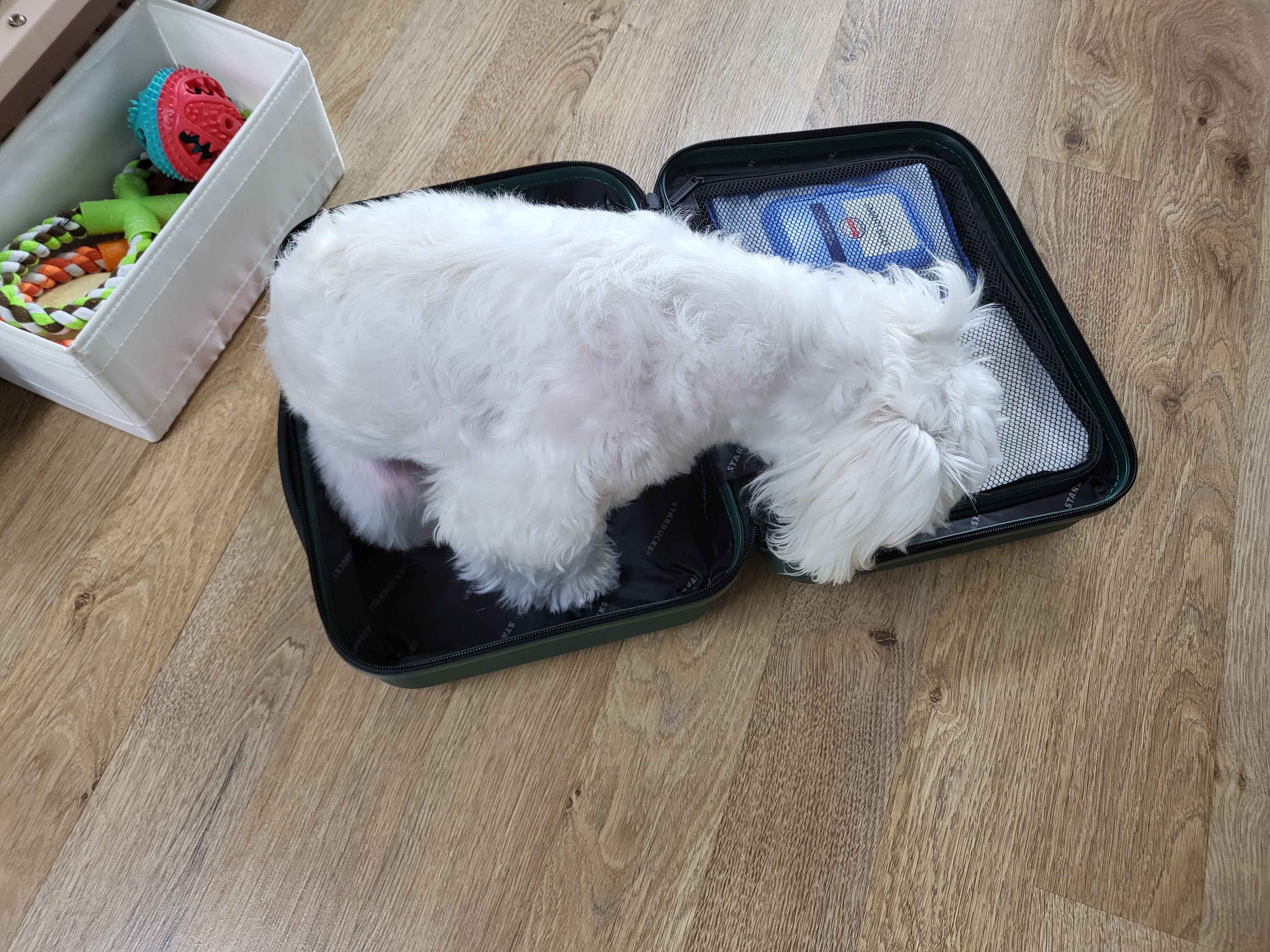 짐좀싸려고 가방 꺼내면 자기가 들어가겠다고 저리 쏘옥하고 들어가네요