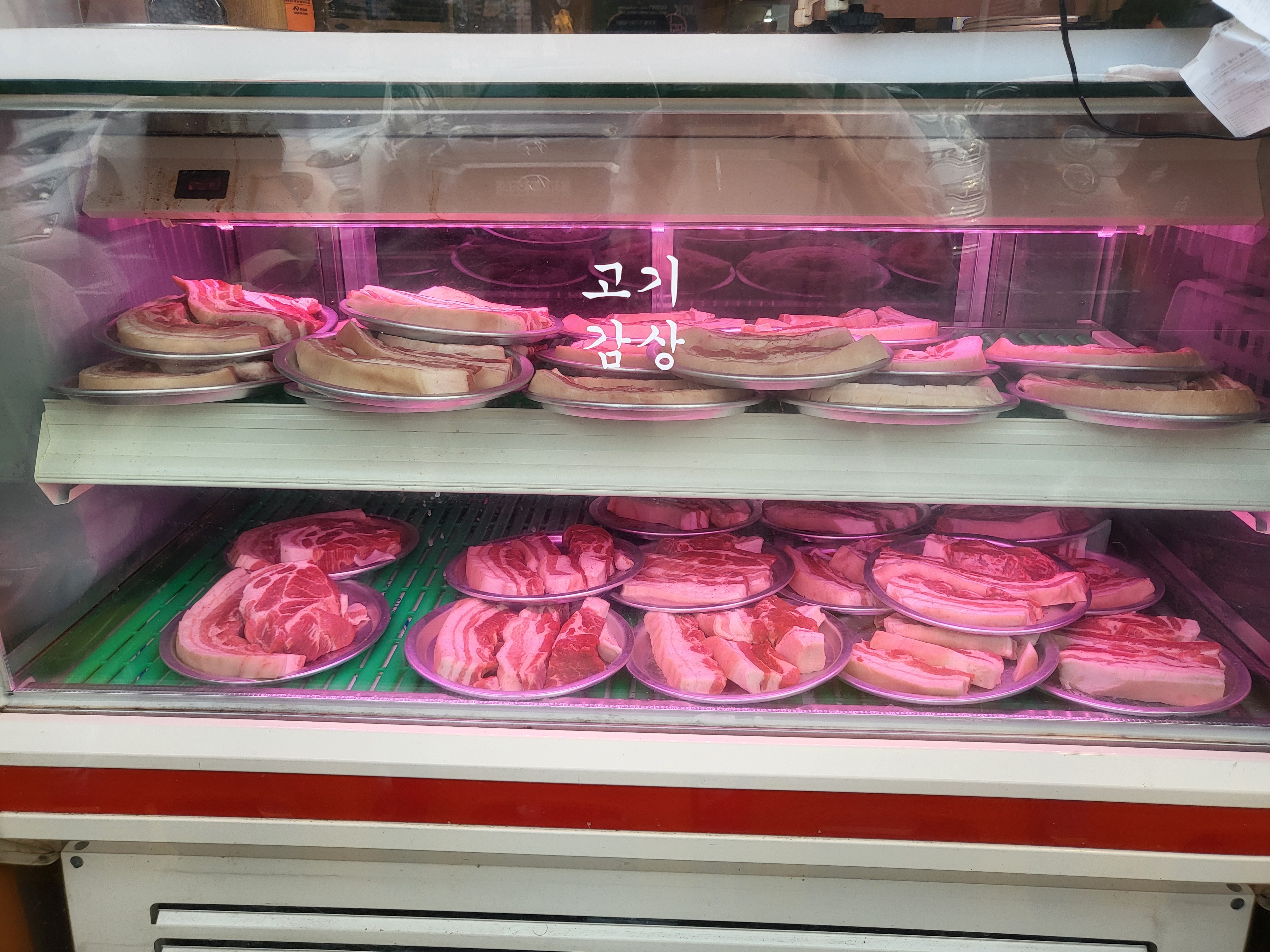 인테리어부터 고기 냉장고까지 분위기 완전 옛날스타일인데 맘에 쏘오~옥 드네요