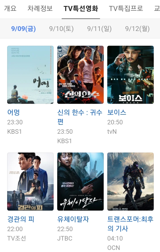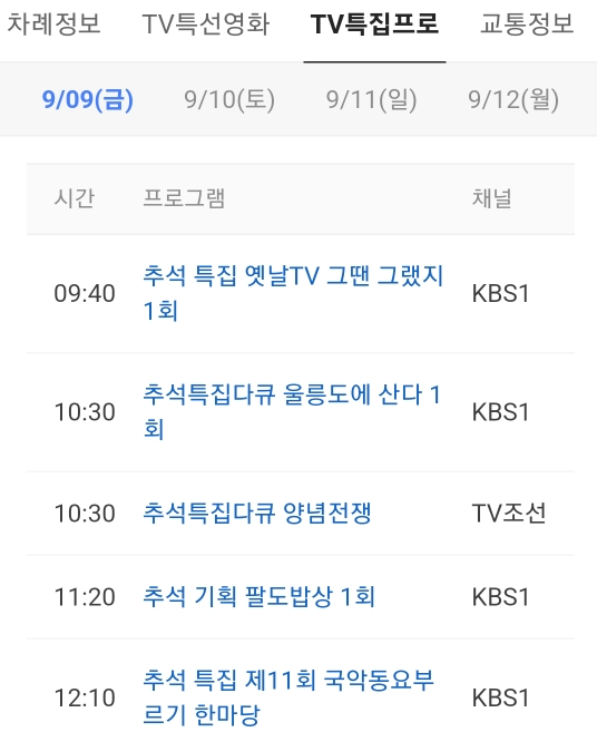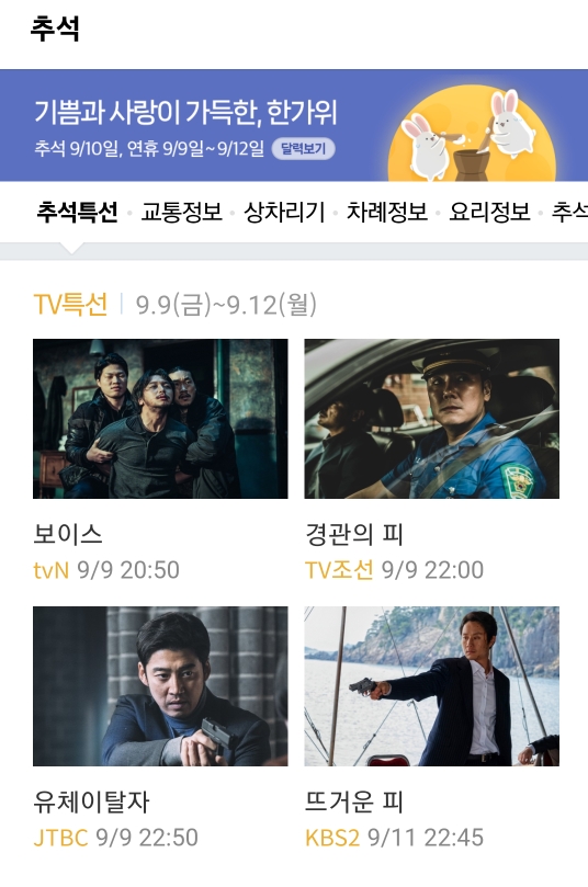 추석 9월9일부터 9월12일까지 tv특선영화 정보도 나와있구요