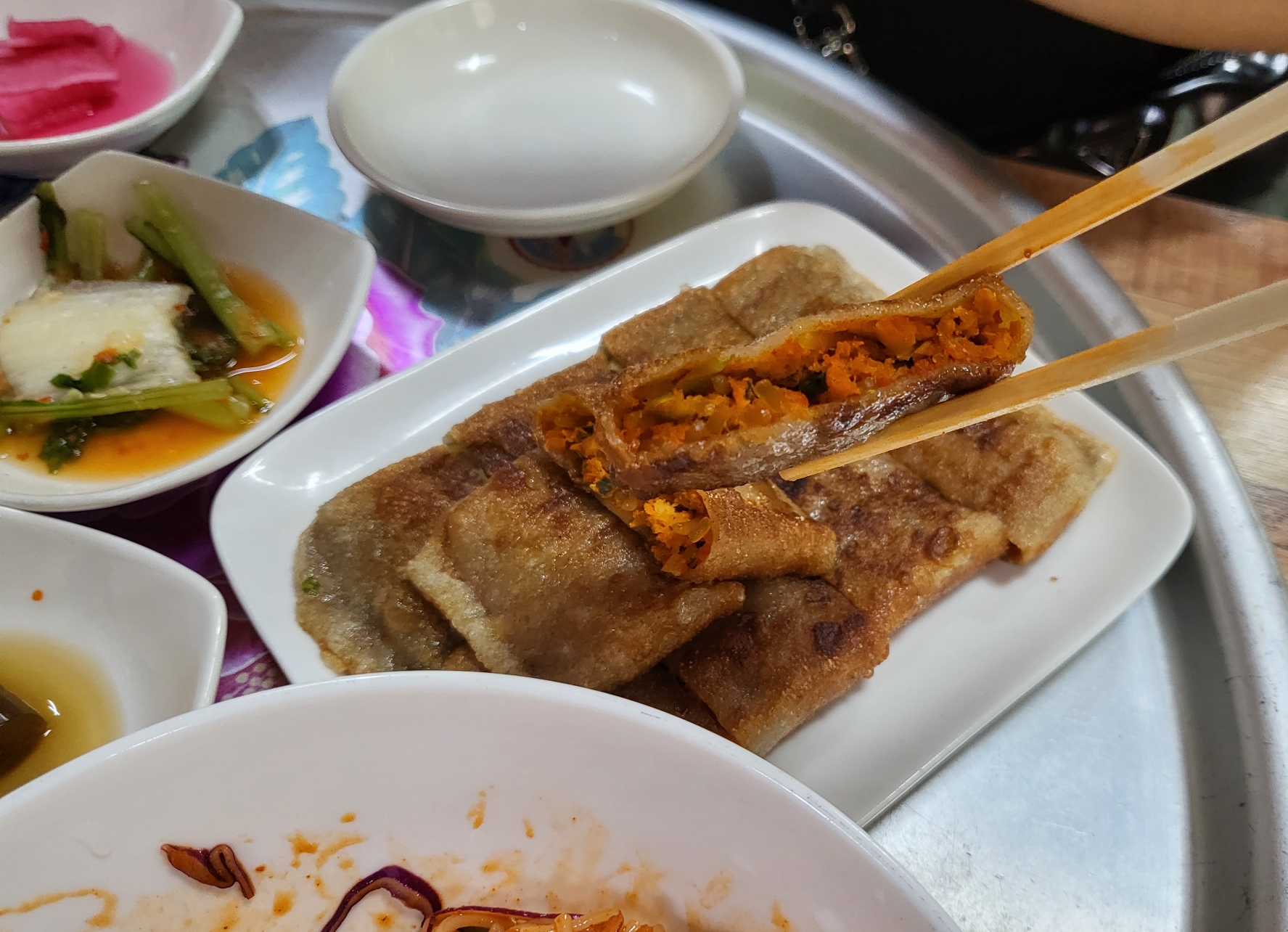 고소한 냄새가 매력적이었던 메밀전병은 고기맛과 김치맛 두가지가 나와요