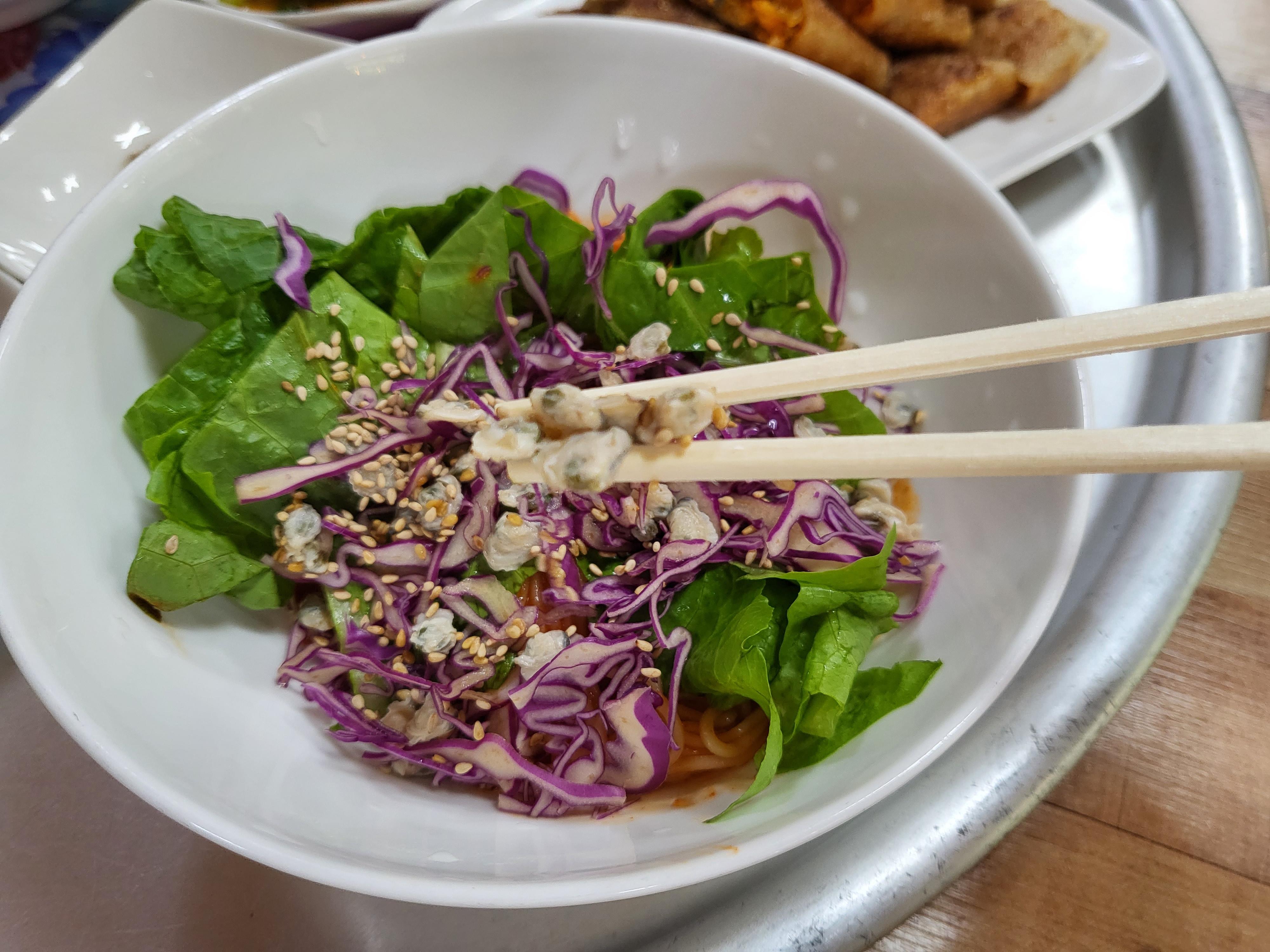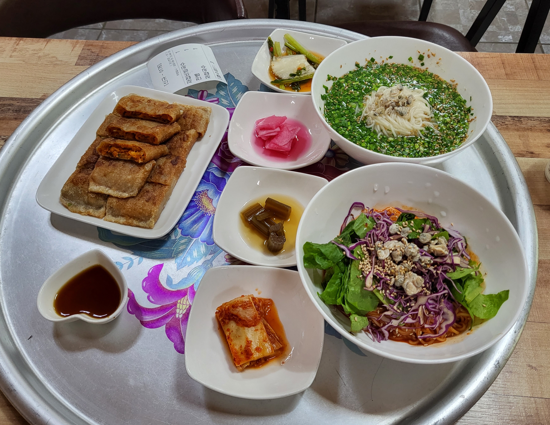 재첩국수와 재첩비빔국수 전병으로 주문했어요