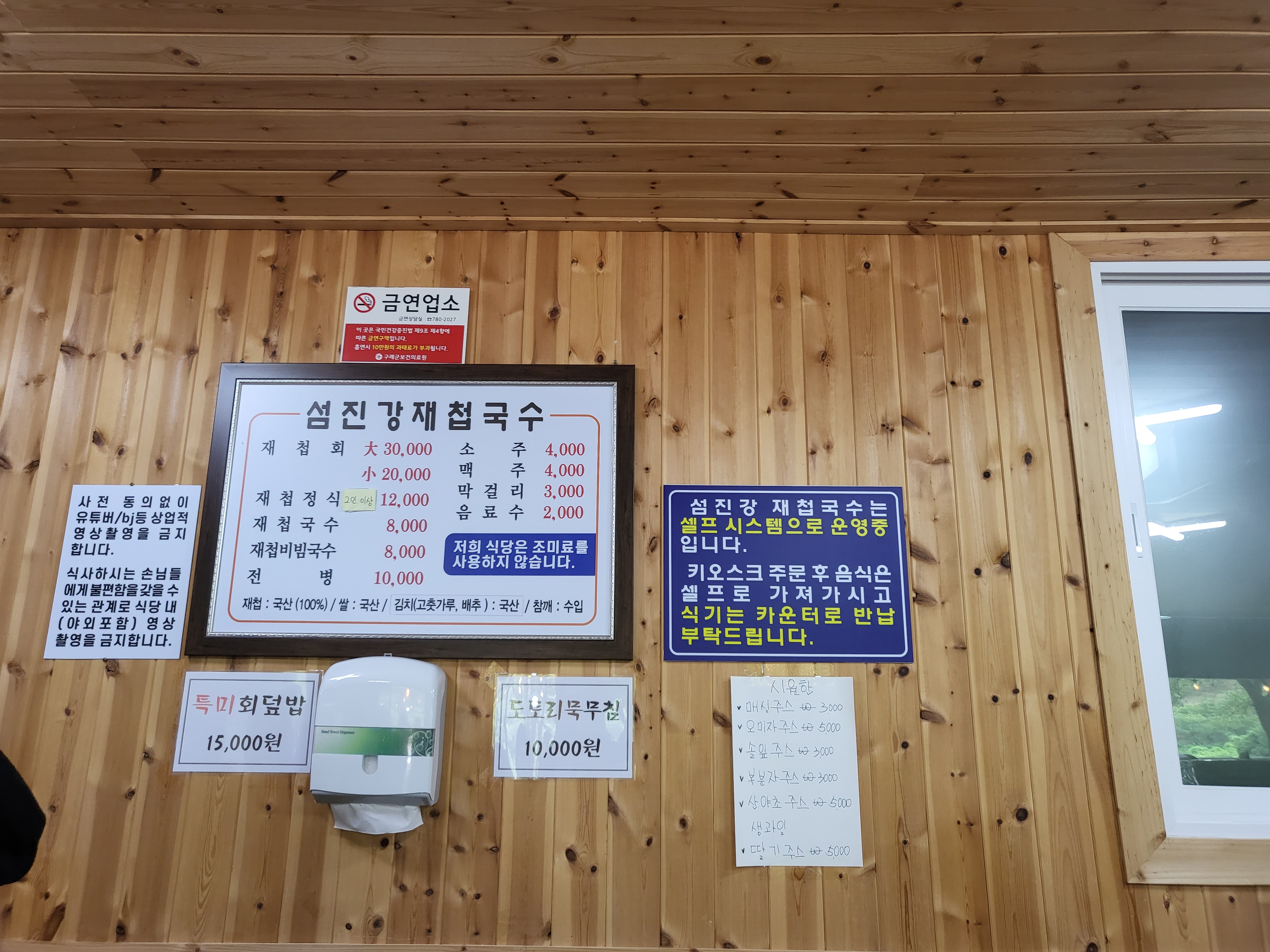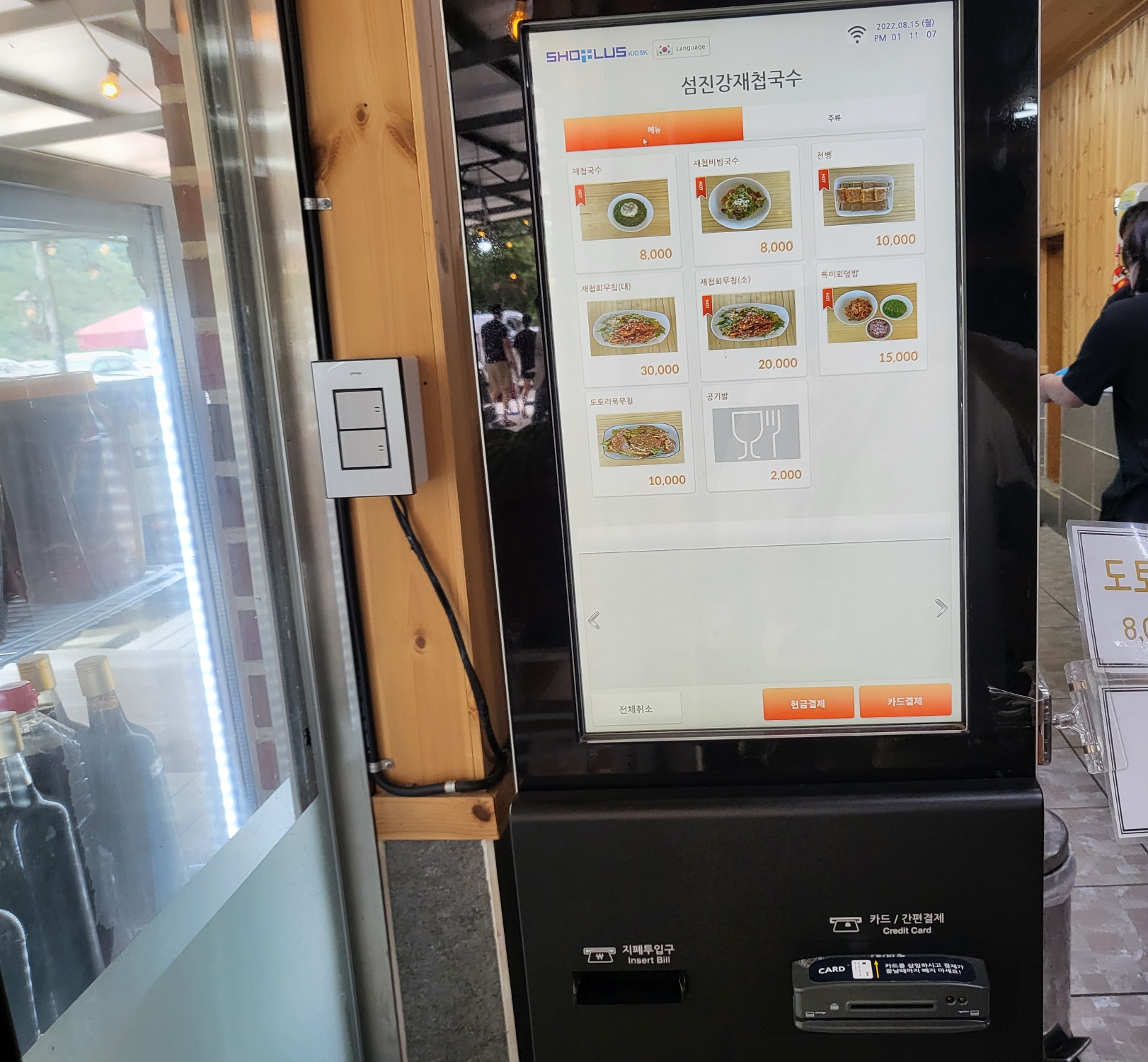 섬진강 재첩국수 키오스크로 주문하고 음식 셀프로 운영하는곳이에요