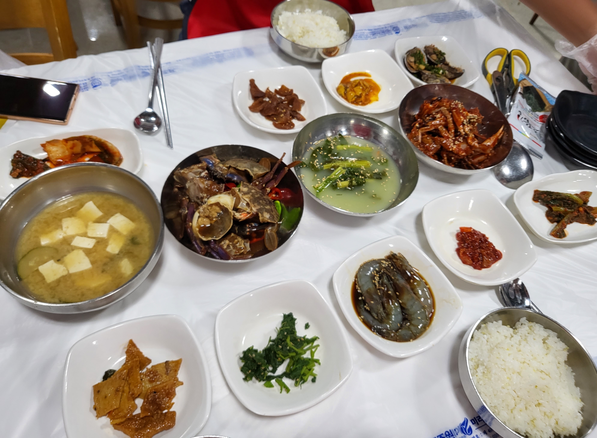 통통한 새우장은 인원수에 맞춰서 하나씩 나오고 멍게젓과 오징어젓 갓김치와 나물등이 나오는데 대부분이 짠반찬이라 밥이 막들어가는게 함정