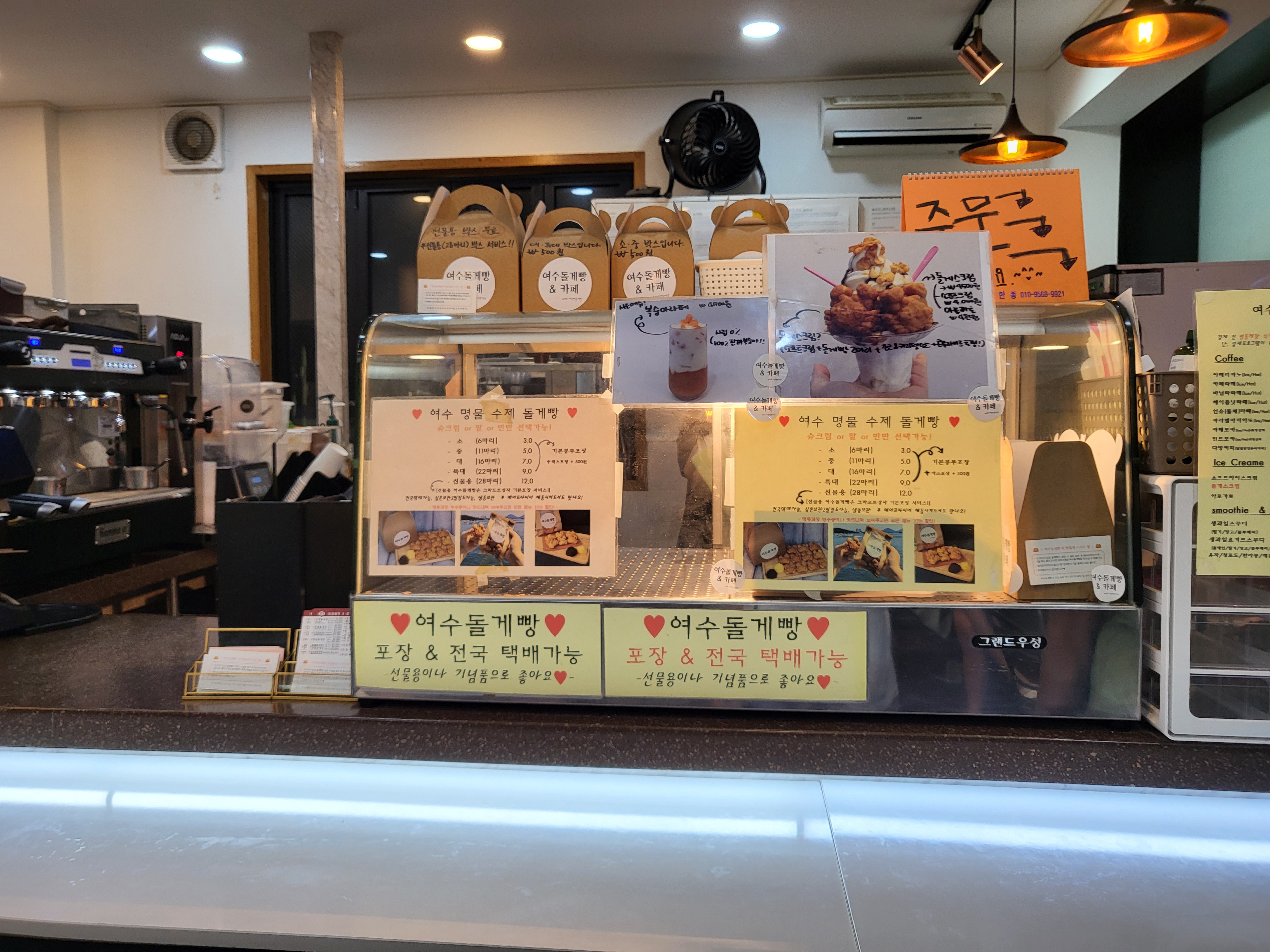 연휴길때 여수여행 많이들 왔는지 저녁에 갔더니 대기가 어마어마한거에요 대기표받고 명동게장 맞은편에 대기실이 있어 자리잡고 대기하다 배고픔을 못이기고 여수돌게빵을 사버렸어요
