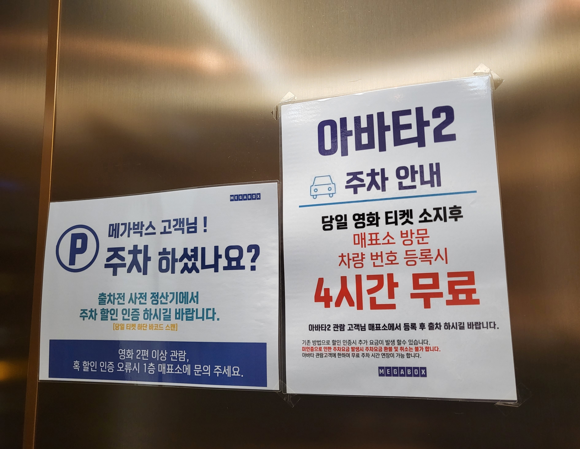 아바타2 영화시간이 길어서 걱정했는데 아바타2본다면 메가박스 주차 4시간 무료에요