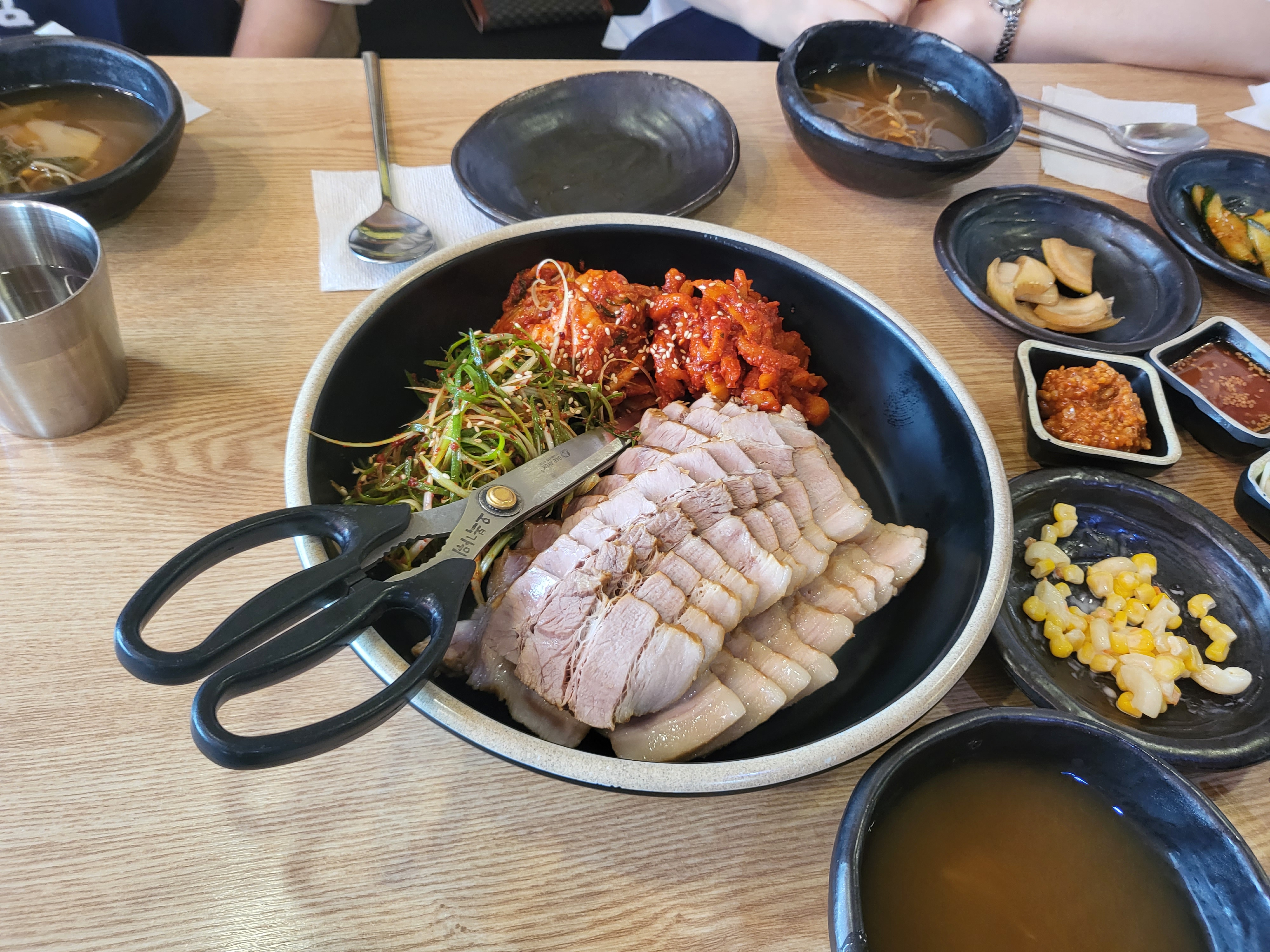 6명이가서 보싸마정식 3인분과 쟁반국수가 포함된 정식세트 3인 주문했어요