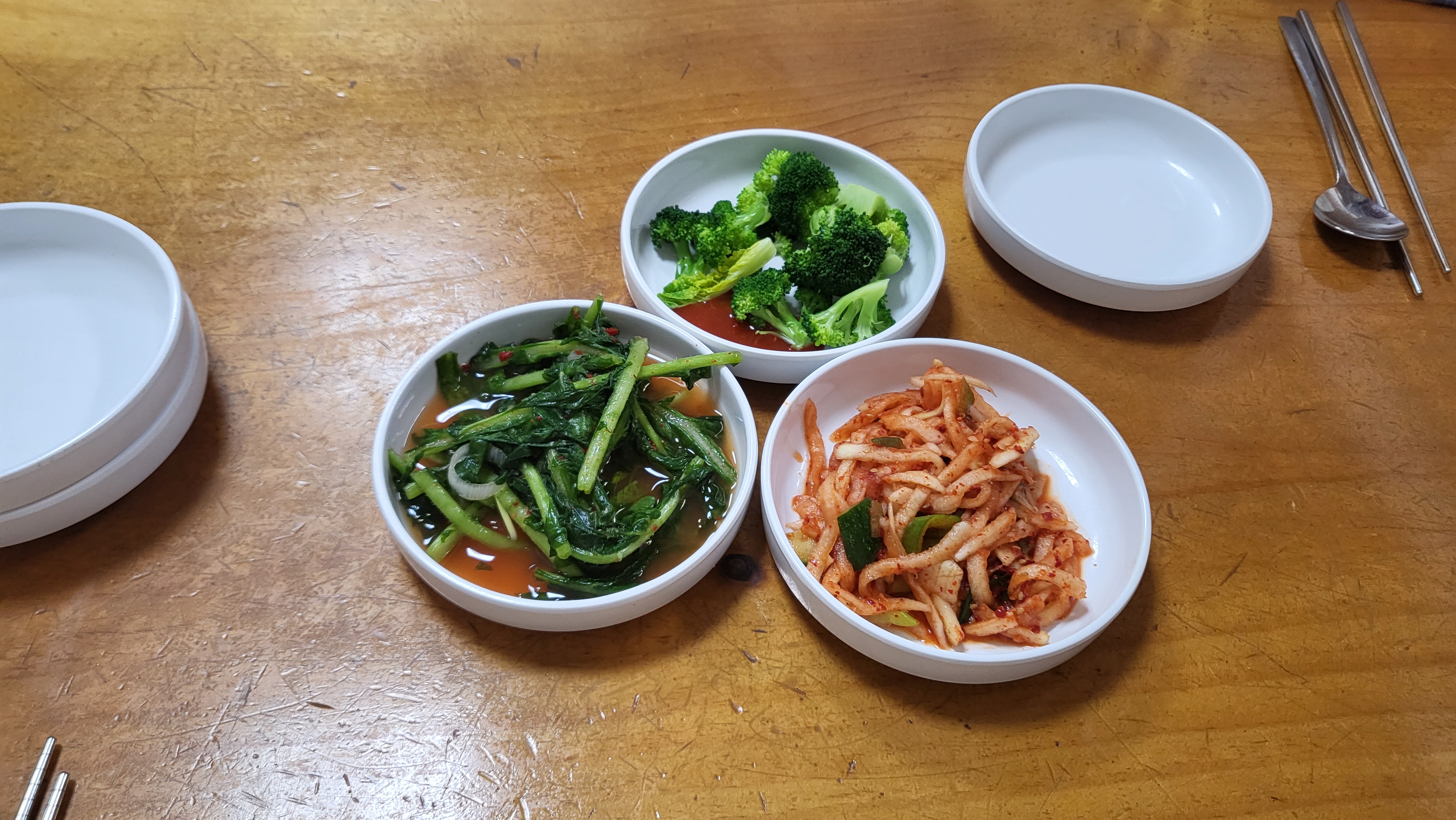 주막보리밥 기본반찬은 브로콜리와 열무김치.무생채로 항상 3가지가 나와요