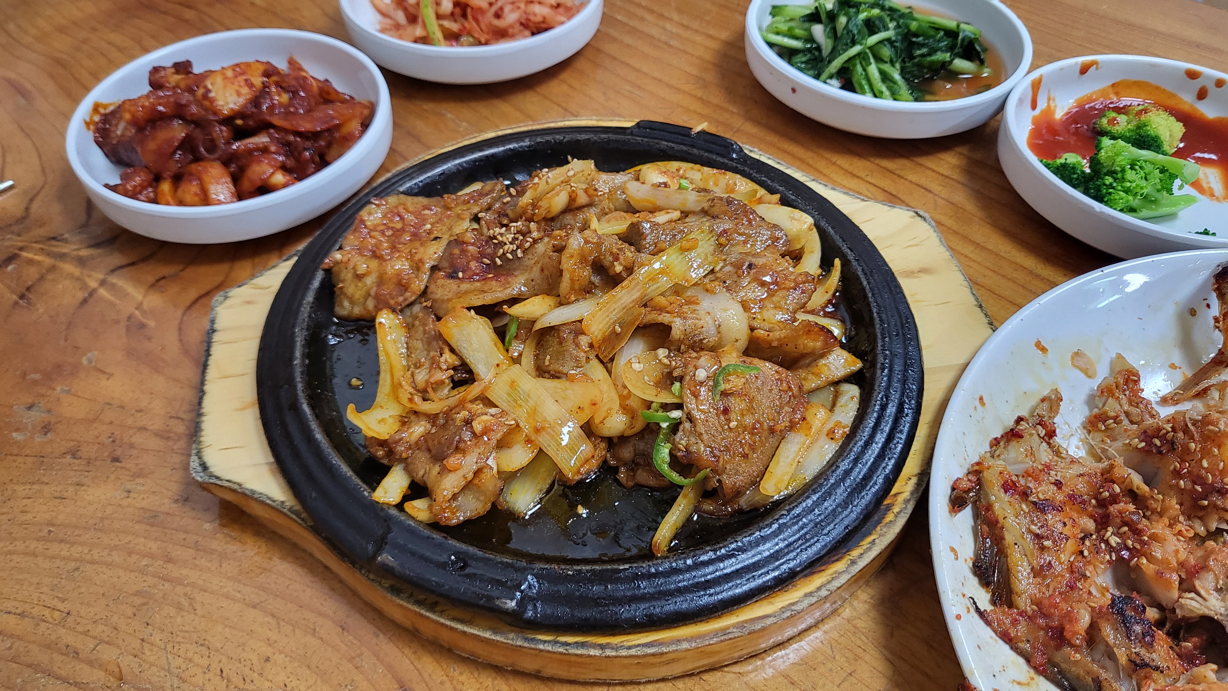 구수한 털레기에 매콤달콤 쭈꾸미볶음 제육볶음과 코다리구이로 푸짐하게 한끼먹고 왔어요