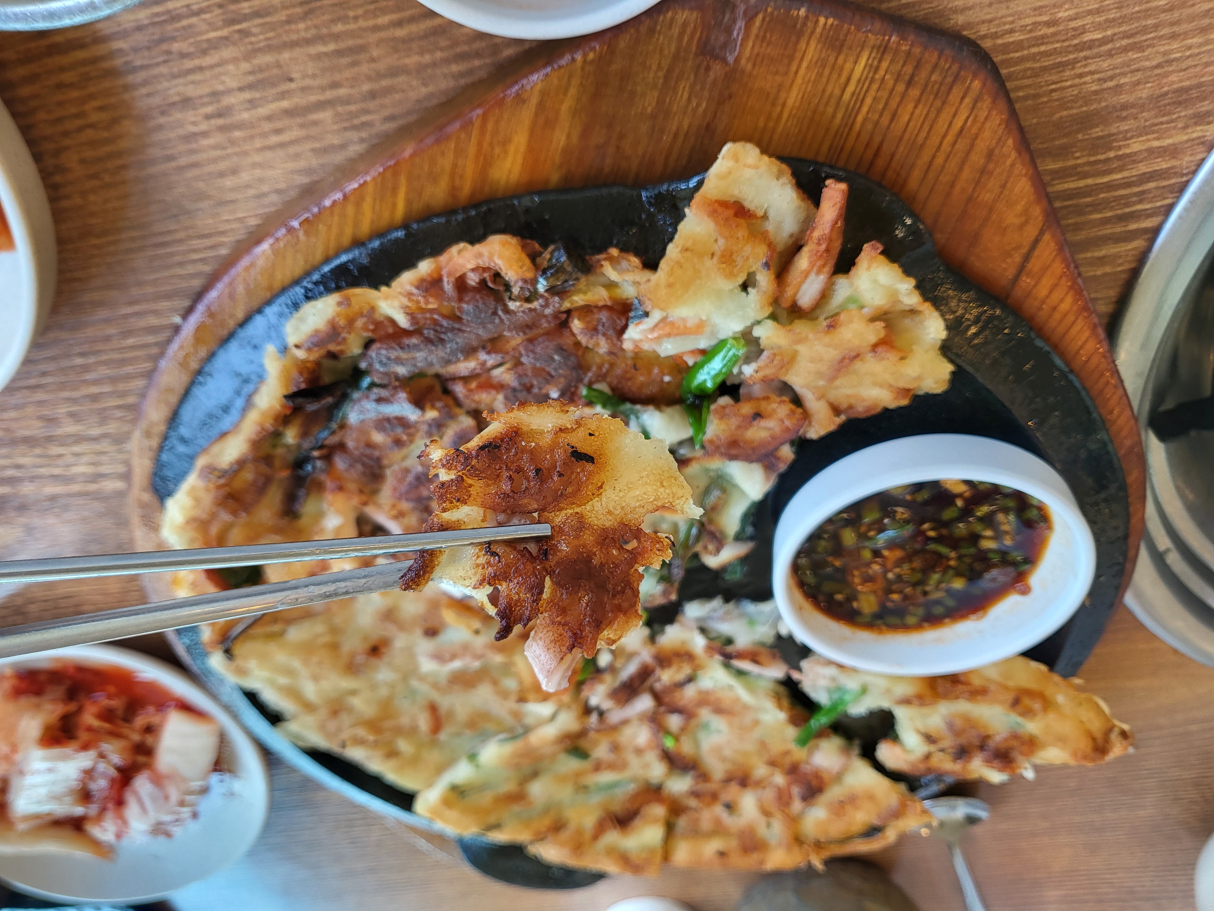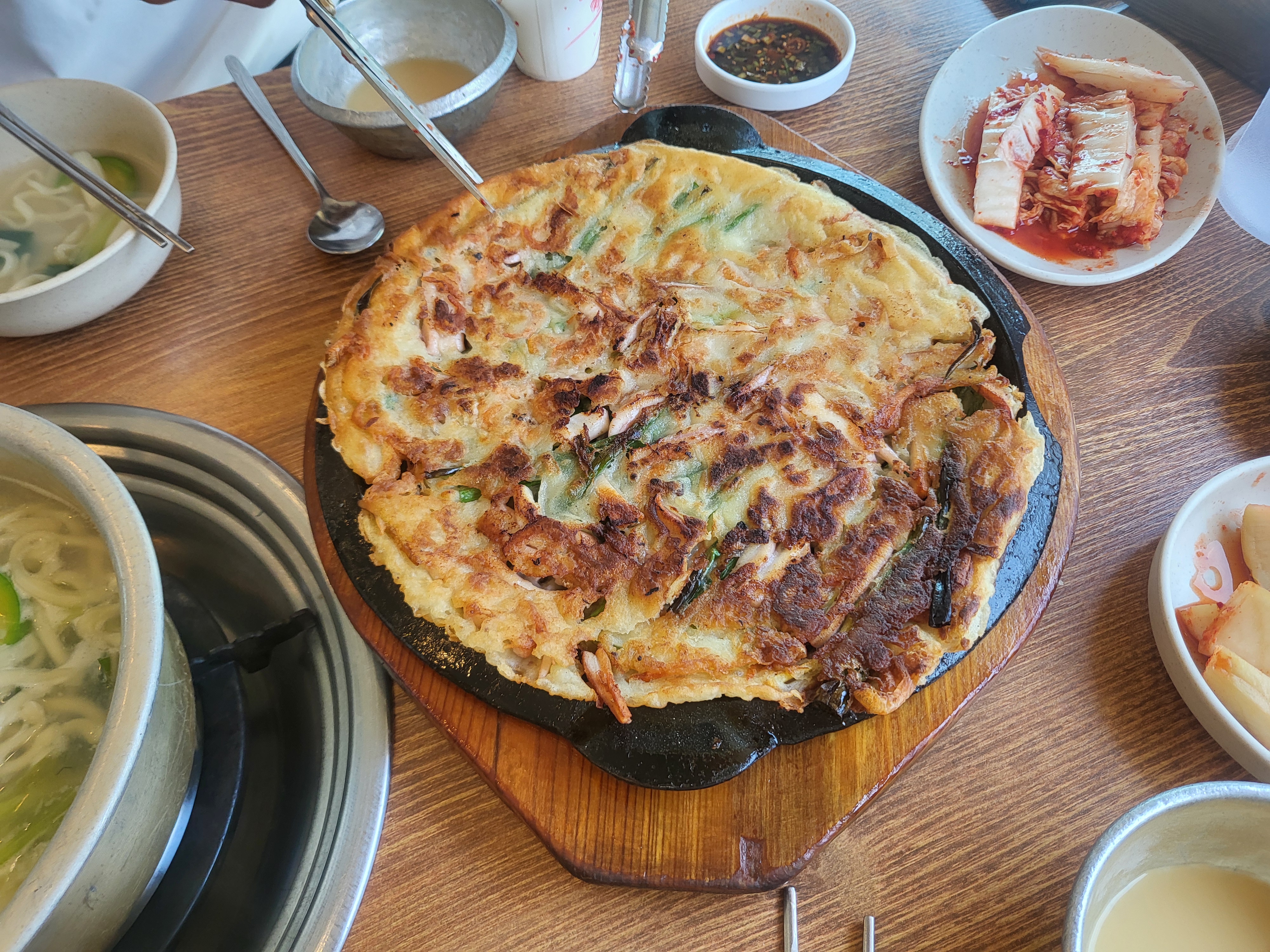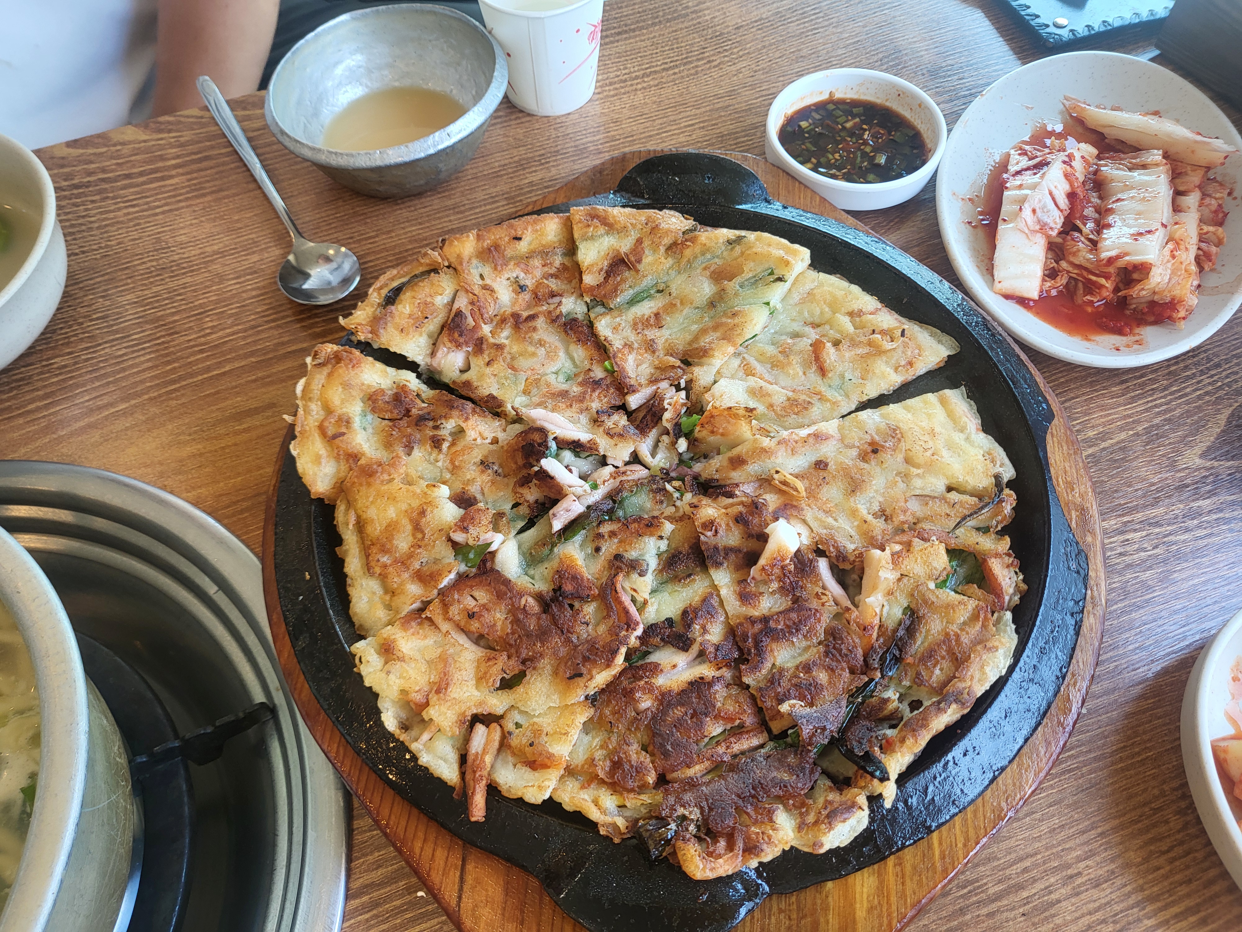 바삭바삭 잘 구워진 해물파전도 맛있어요