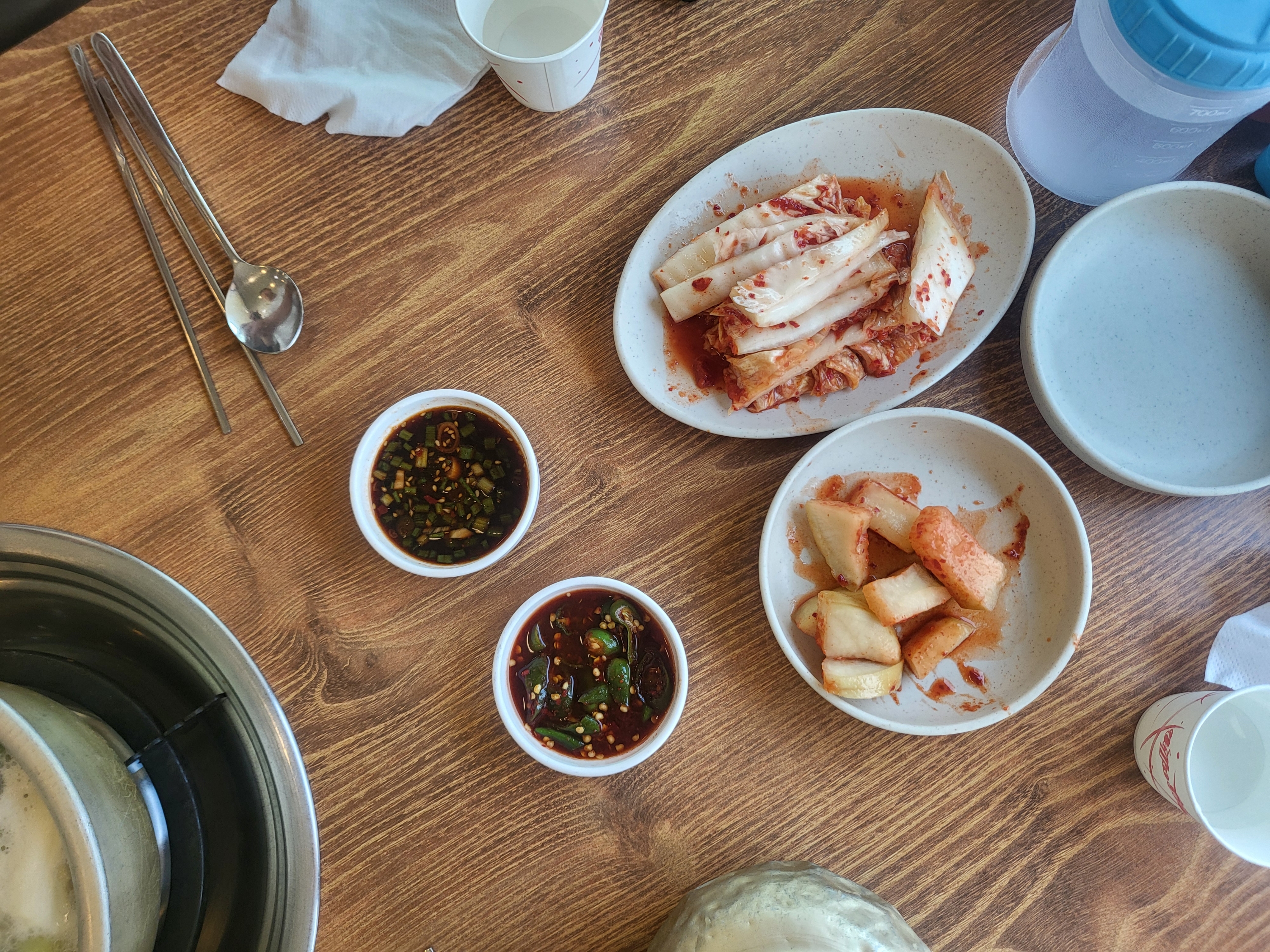 칼국수주문하면 반찬은 배추김치와 깍두기가 나와요