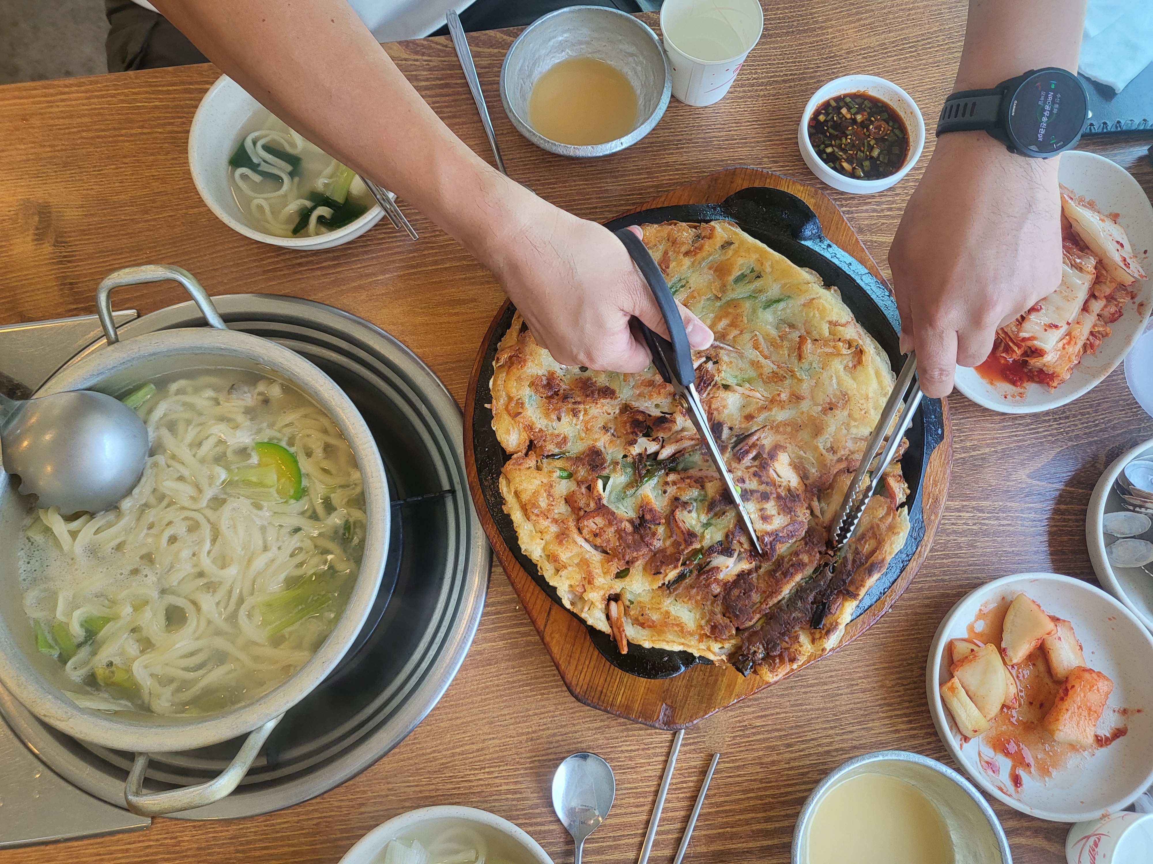 칼국수.해물파전.양푼비빔밥.영양밥이에요