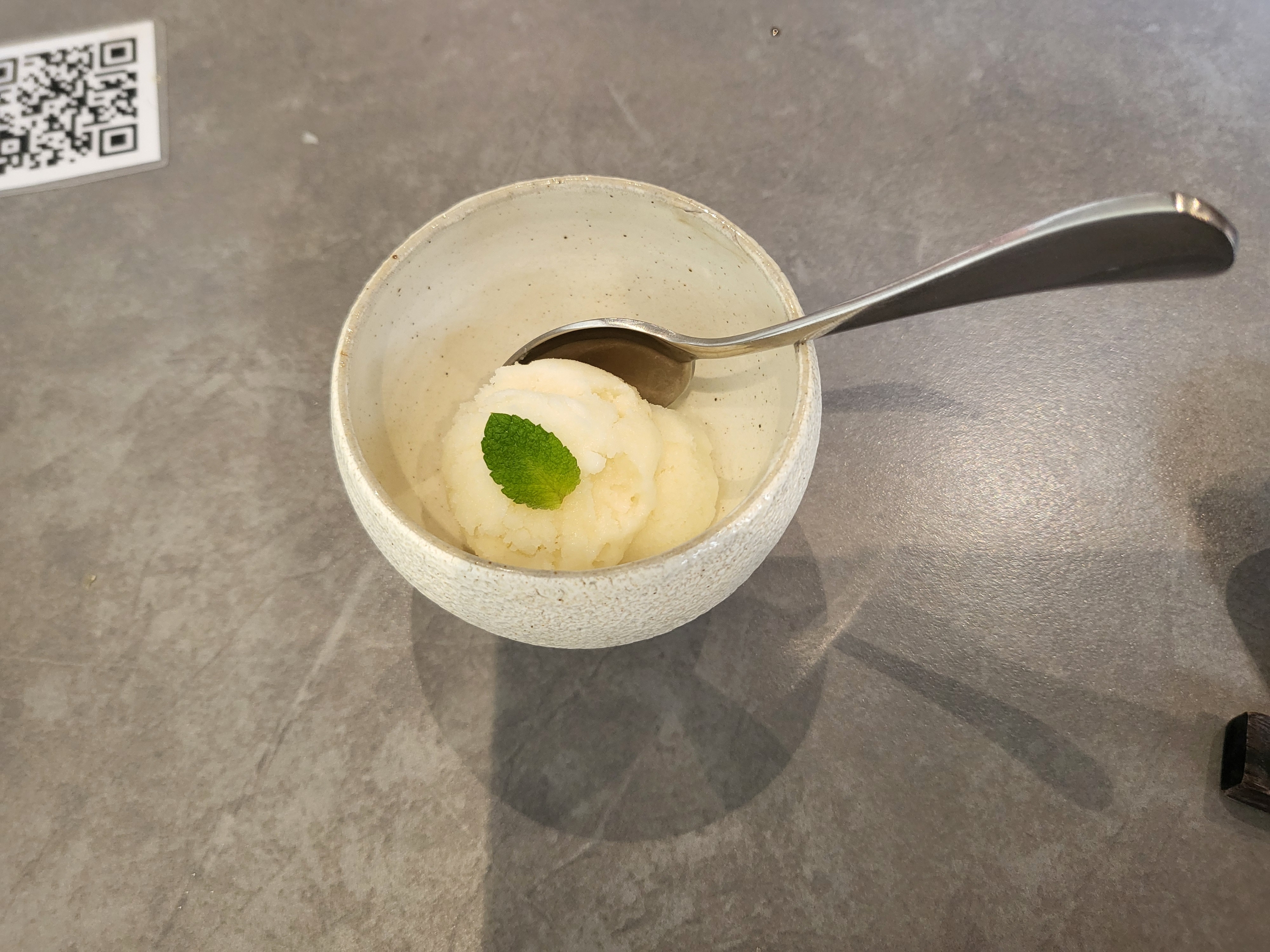 점심코스요리로 3가지 음식과 디저트 나왔어요