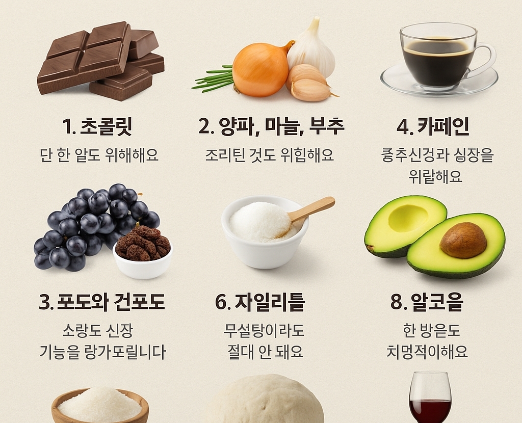 강아지가 절대 먹으면 안 되는 음식 8가지를 소개해 드릴게요.
