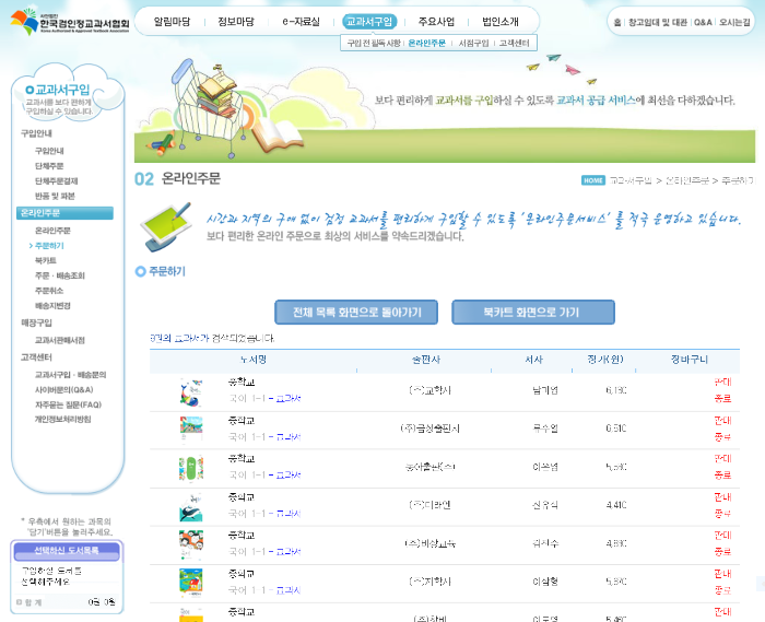교과서 주문은 전날 오후2시부터 당일 오전9시 결제 완료건은 평일 오전9시 1차 주문승인이 되고