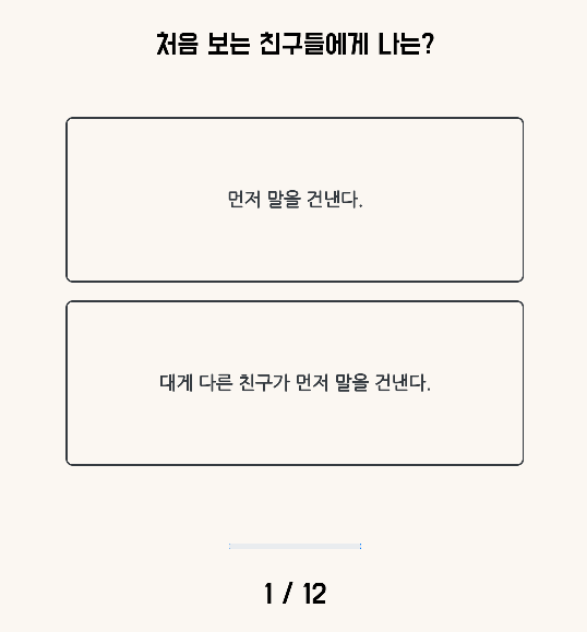 12개의 질문이 나오고 질문에 대한 선택을 하는데 몇분안걸리고 테스트 끝나더라구요